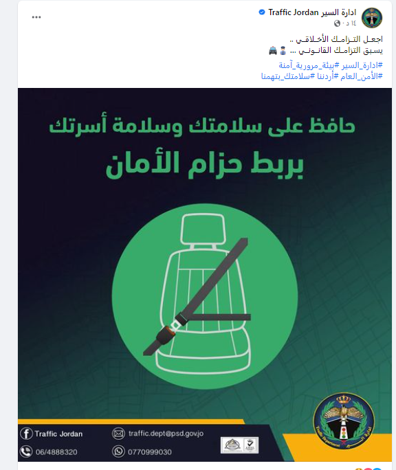 عاجل: إدارة السير : بدء التشديد على مخالفة عدم استخدام حزام الامان الاثنين