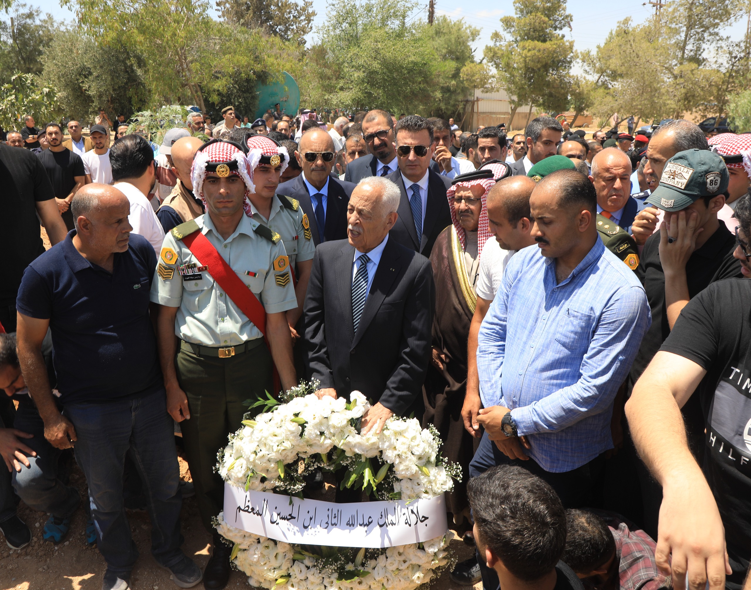 مندوبا عن جلالة الملك عبدالله الثاني، وسمو الأمير الحسين بن عبدالله الثاني، ولي العهد، حضر رئيس الديوان الملكي الهاشمي تشييع جثمان الشاب يزيد حسين أحمد الحنيطي.