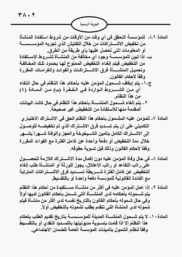 ويأتي النظام، بعد تعديلات قانون الضمان الاجتماعي التي صدرت في الجريدة الرسمية، وسمحت لأصحاب العمل بتخفيض اشتراكات تأمين الشيخوخة والعجز والوفاة لعاملين بشروط.