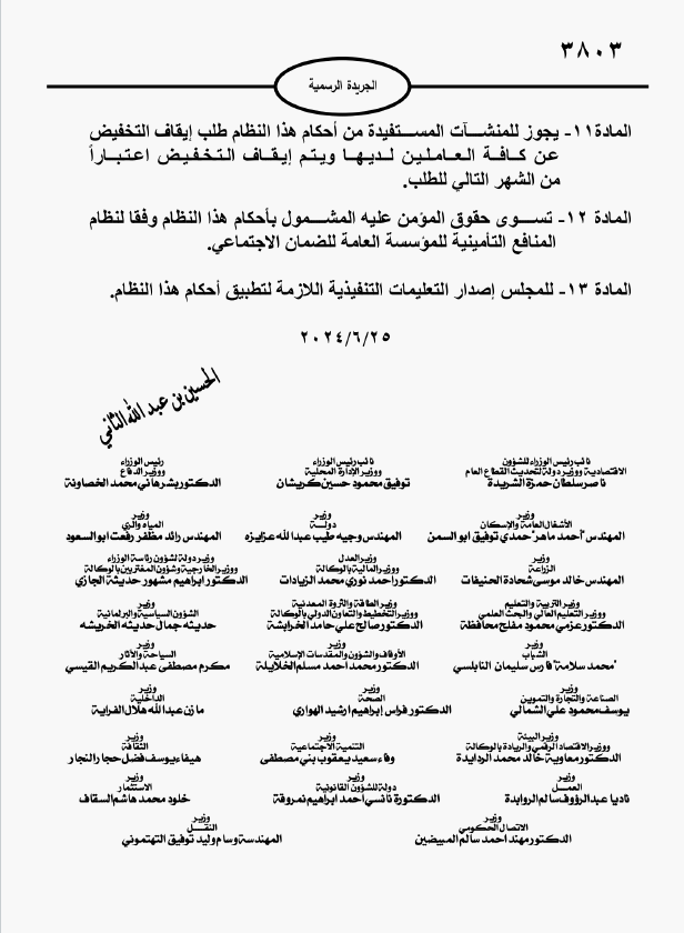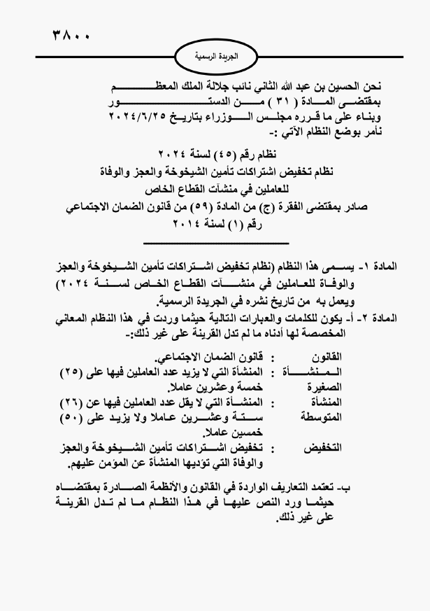 القلعة نيوز- صدر في عدد الجريدة الرسمية اليوم الخميس، نظام تخفيض اشتراكات تأمين الشيخوخة والعجز والوفاة للعاملين في منشآت القطاع الخاص لسنة 2024، الذي أقره مجلس الوزراء في حزيران الماضي.