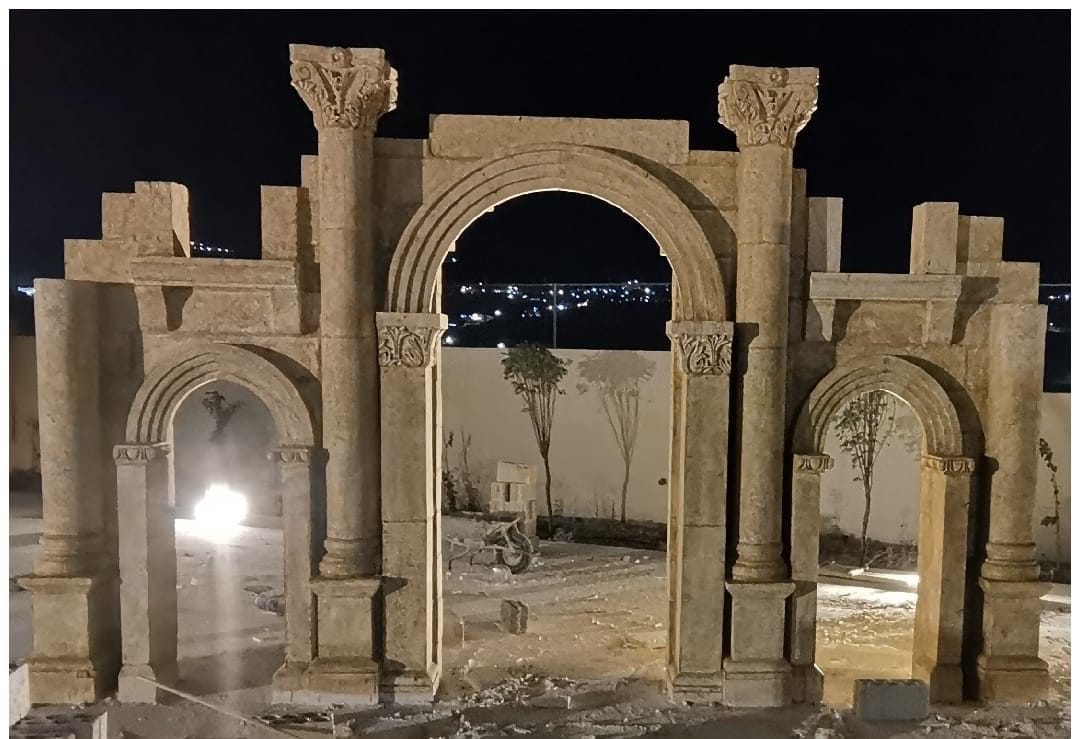الرواشدة ينشر صورة لمنحوته تسجد البوابة الأثرية يجري العمل عليها امام مدخل المركز الثقافي في جرش ( صورة )