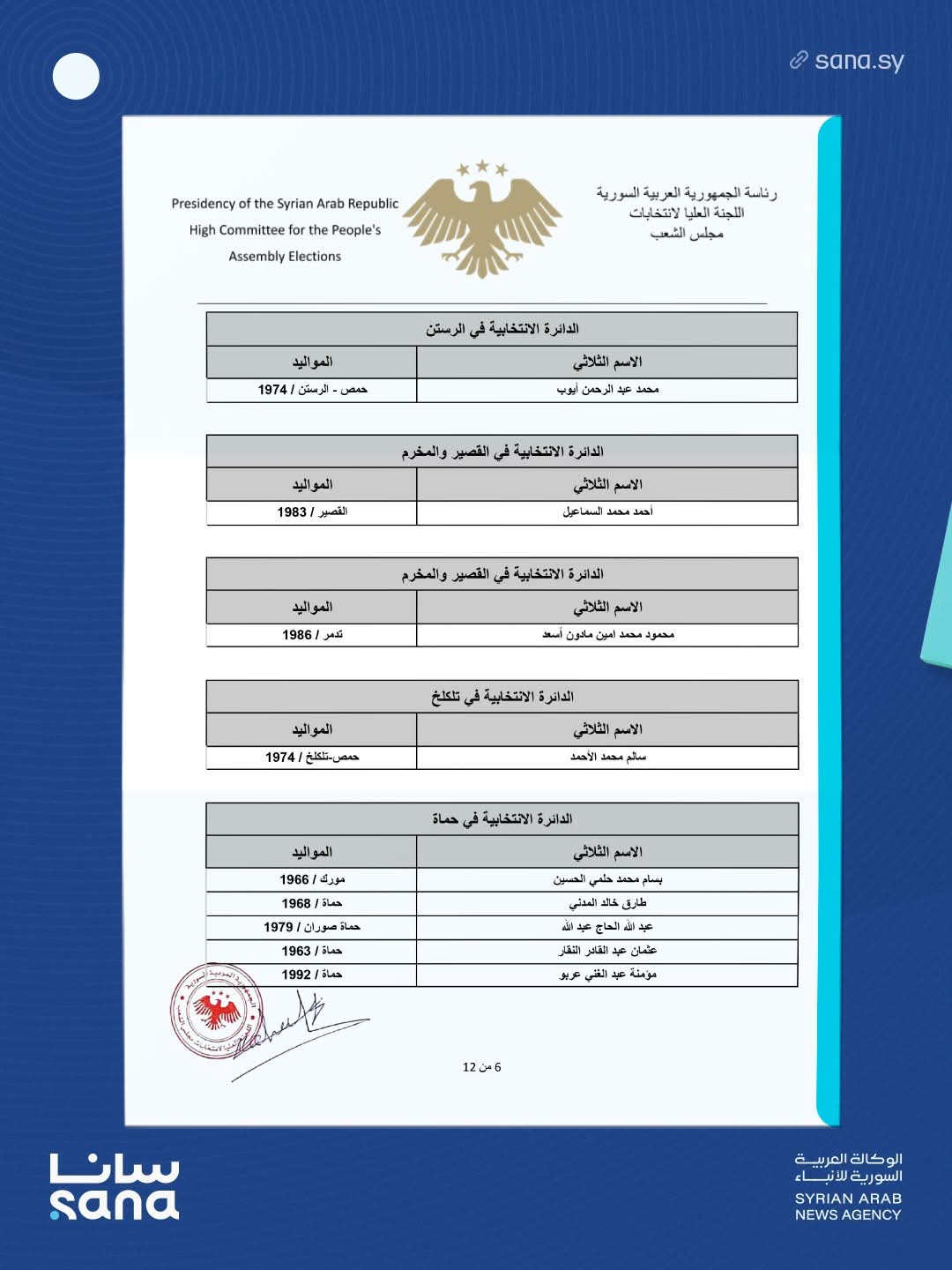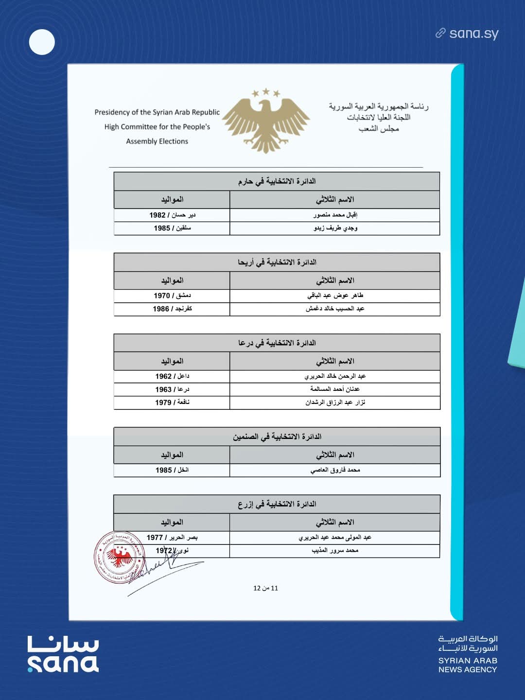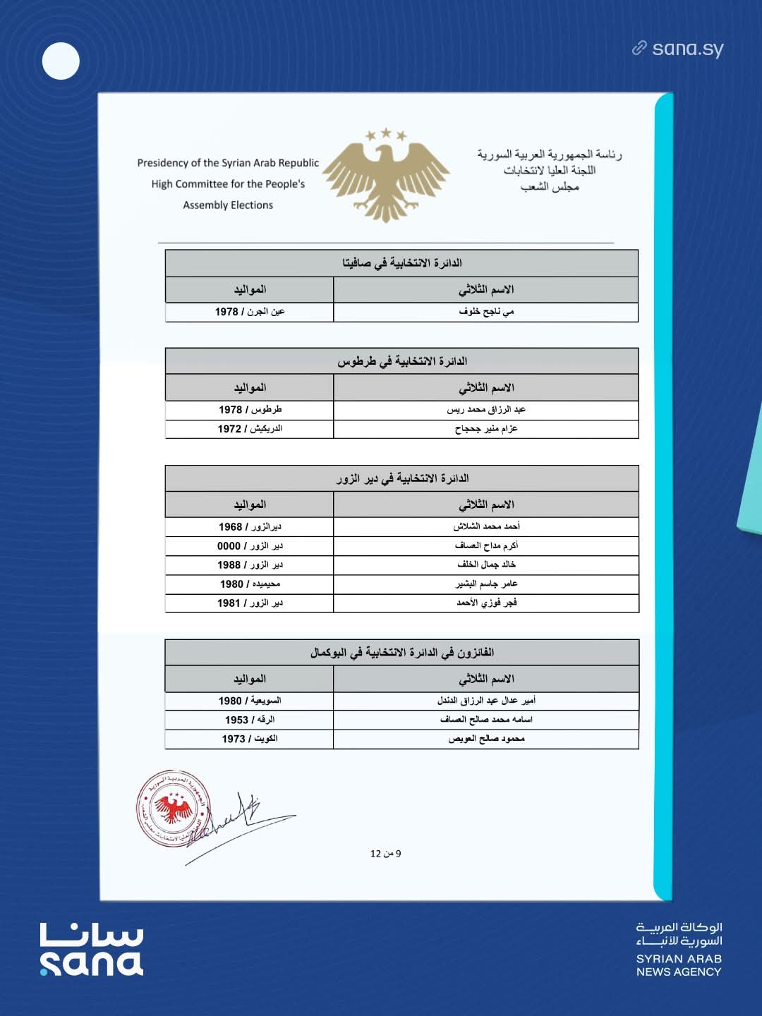 القلعة نيوز- أصدرت اللجنة العليا لانتخابات مجلس الشعب السوري، الاثنين، النتائج الأولية لانتخابات المجلس في الدوائر الانتخابية بالمحافظات.