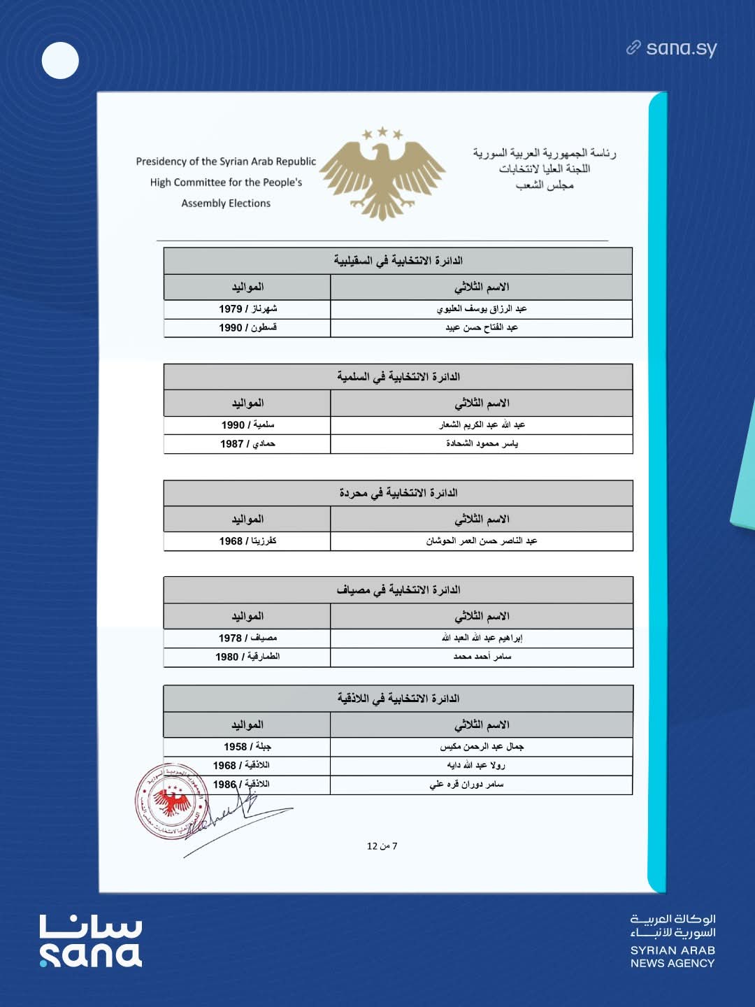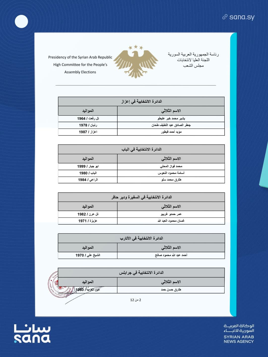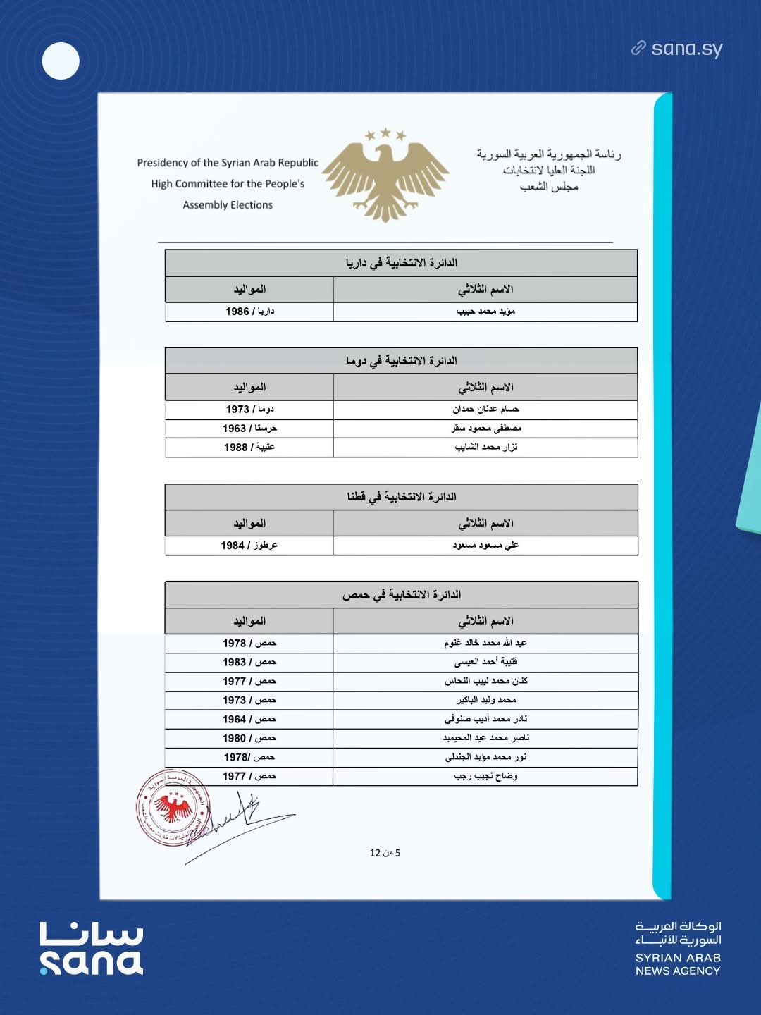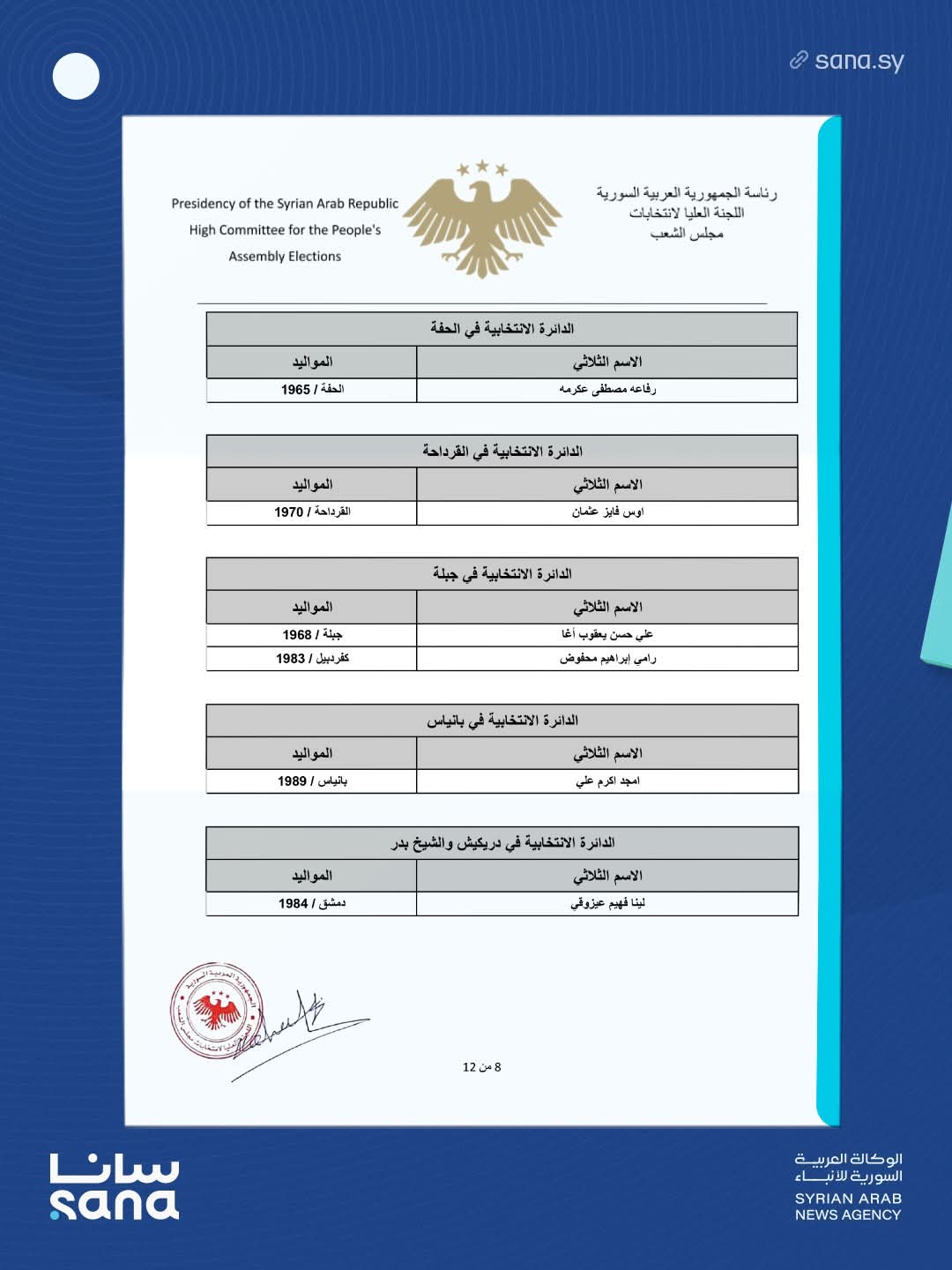 القلعة نيوز- أصدرت اللجنة العليا لانتخابات مجلس الشعب السوري، الاثنين، النتائج الأولية لانتخابات المجلس في الدوائر الانتخابية بالمحافظات.