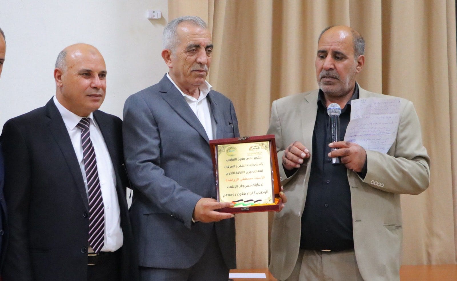 وفي نهاية الندوة، كرّم وزير الثقافة عدداً من أبناء المجتمع المحلي تقديراً لمساهماتهم وجهودهم في تعزيز الثقافة والانتماء الوطني في لواء فقوع.