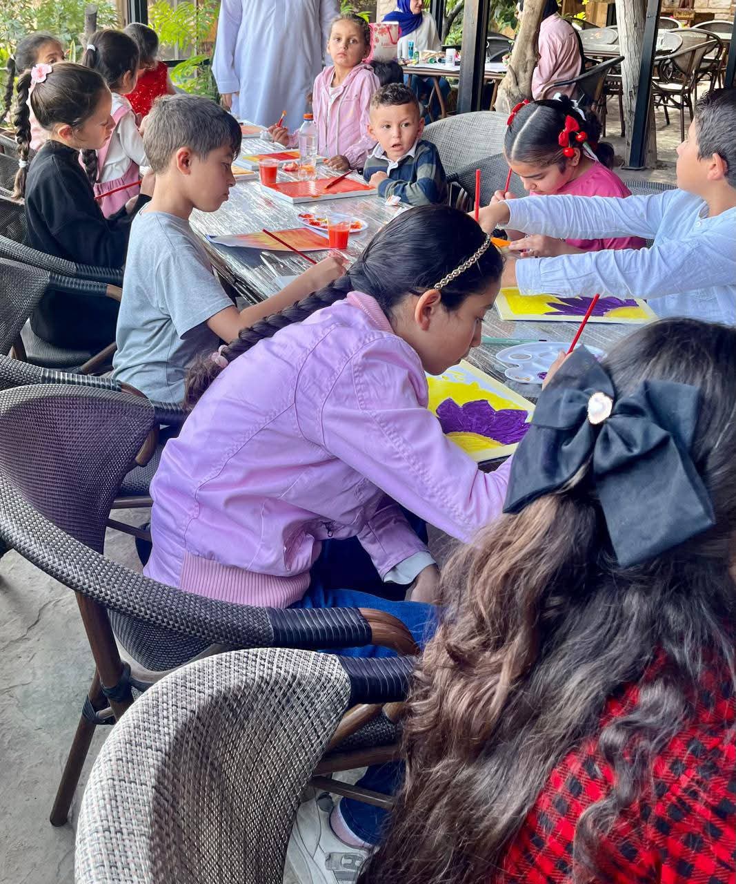 وتهدف الورشة إلى تنمية الحسّ الفني والإبداعي لدى الأطفال، وإتاحة الفرصة لهم للتعبير عن مشاعرهم وأفكارهم بالألوان والخيال، ضمن أجواء مليئة بالمرح والتفاعل والإبداع.