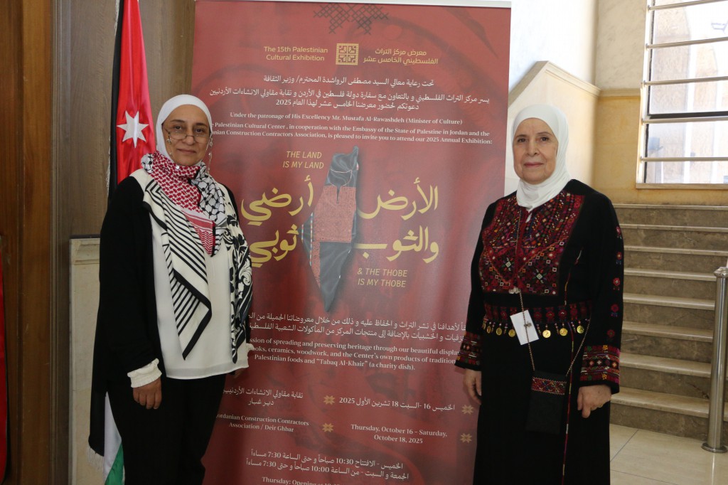القلعة نيوز- مندوبة عن وزير الثقافة مصطفى الرواشدة، رعت مساعدة الأمين العام لوزارة الثقافة عروبة الشمايلة، اليوم، في مقر نقابة مقاولي الإنشاءات الأردنيين بعمان، افتتاح معرض مركز التراث الفلسطيني الخامس عشر، بعنوان "الأرض أرضي والثوب ثوبي"، والذي نظمه المركز بالتعاون مع سفارة دولة فلسطين في الأردن ونقابة مقاولي الإنشاءات بحضور رئيسة المركز السيدة مريم جبر، ونائب نقيب مقاولي الإنشاءات الدكتور معروف الغنانيم، والملحق الثقافي في السفارة الفلسطينية السيدة عبير المراغي.