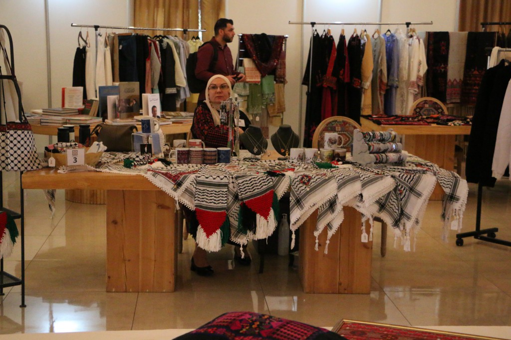 واشتمل المعرض على مشغولات حرفية يدوية فلسطينية، إلى جانب الأثواب التقليدية والمنسوجات والمطرزات المستوحاة من الموروث الشعبي الفلسطيني، كما تضمن معرض كتب حول القضية الفلسطينية، ومطبوعات وخرائط تعريفية شاملة لأجزاء فلسطين ومدنها وقراها، بما في ذلك القرى المهدمة والمهجرة.