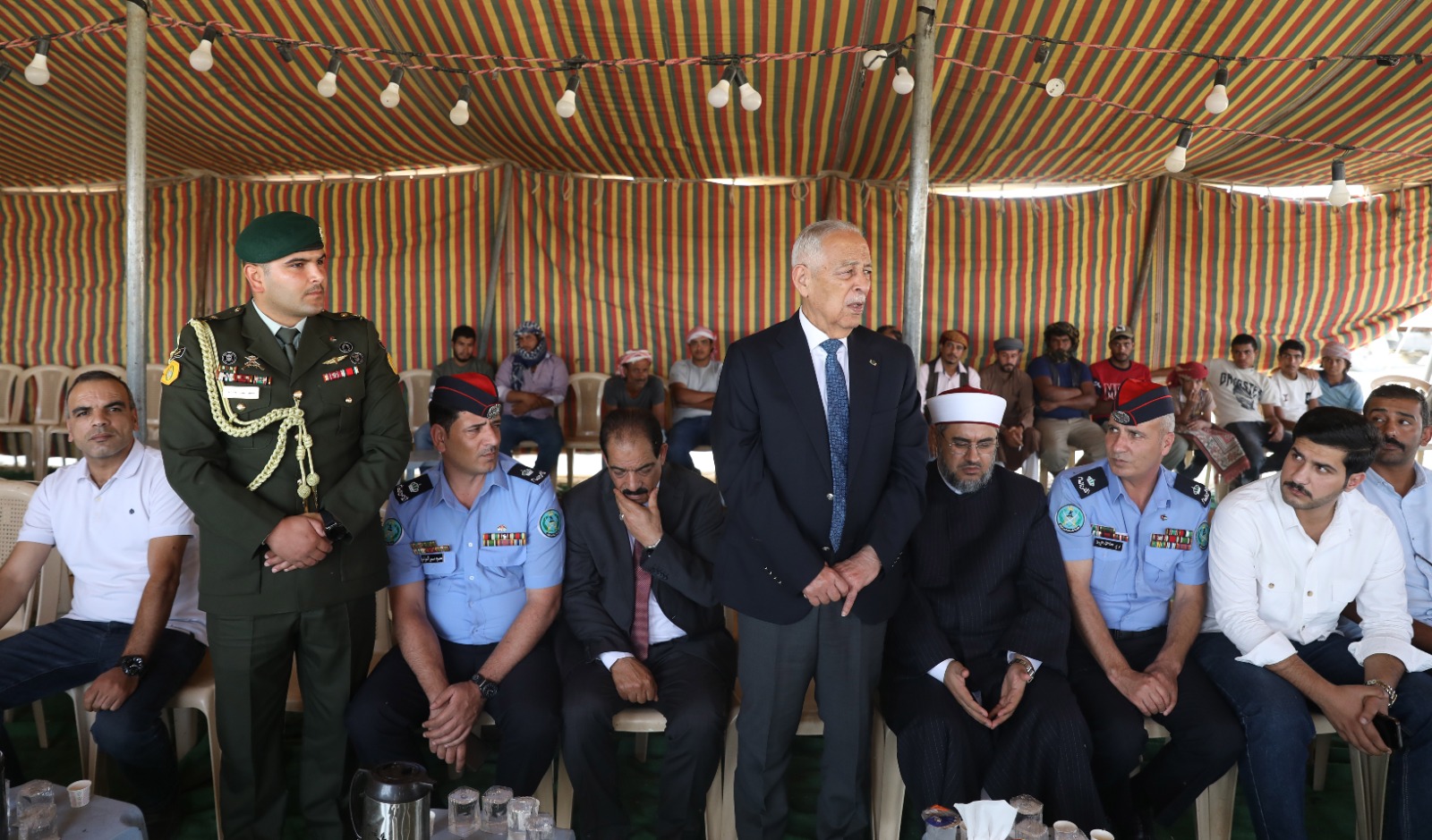 القلعة نيوز- مندوباً عن جلالة الملك عبدالله الثاني، وسمو الأمير الحسين بن عبدالله الثاني، ولي العهد، قدم رئيس الديوان الملكي الهاشمي يوسف حسن العيسوي اليوم الجمعة واجب العزاء إلى عشيرة المحمدين العزازمة بوفاة الأطفال ازدهار (7 أعوام)، وعامر (5 أعوام)، ومحمد (3 أعوام) أبناء جمال عودة نصار المحمدين، الذين قضوا إثر حادثة غرق مؤسفة في قناة الملك عبدالله.