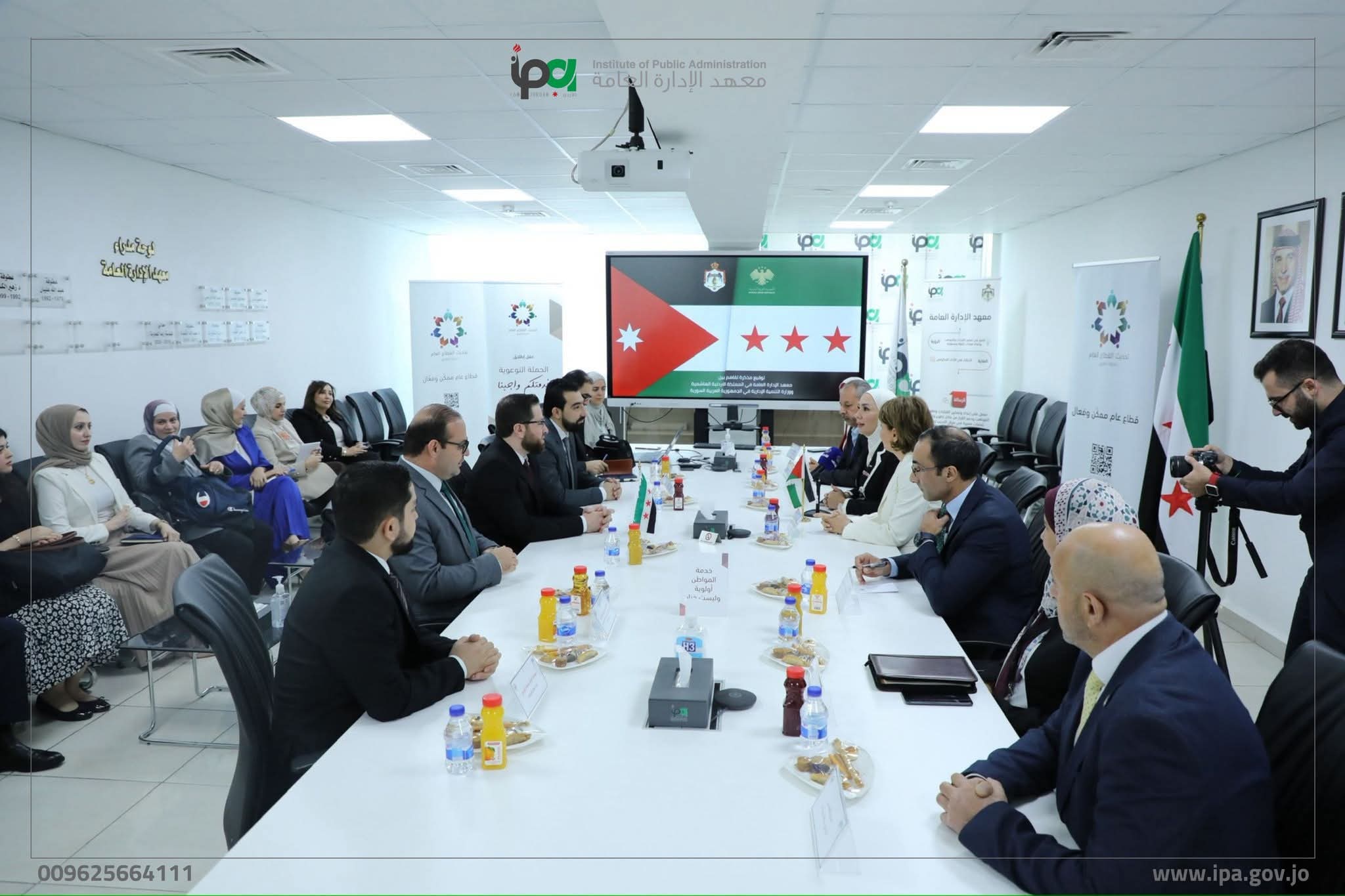 تهدف هذه المذكرة الى تعزيز اواصر التعاون وتعميق التنسيق المشترك بين المملكة الاردنية الهاشمية والجمهورية العربية السورية الشقيقة في مجال تبادل نقل الخبرات، تطوير القيادات الحكومية، بناء وتعزيز القدرات الإدارية والفنية لموظفي مؤسسات القطاع العام السوري بما يتماشى مع اولويات خطط التحول المؤسسي والتنمية الادارية الجمهورية العربية السورية.
