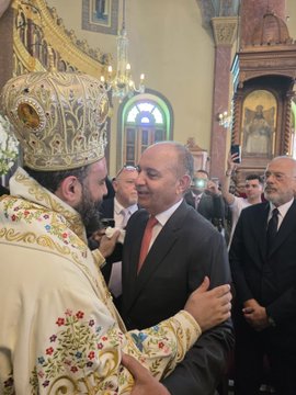 وهنأ السفير "العضايلة" نيافة المطران الدكتور ذمسكينوس الأزرعي، ومبروك لكنيسة الروم الأرثوذكس