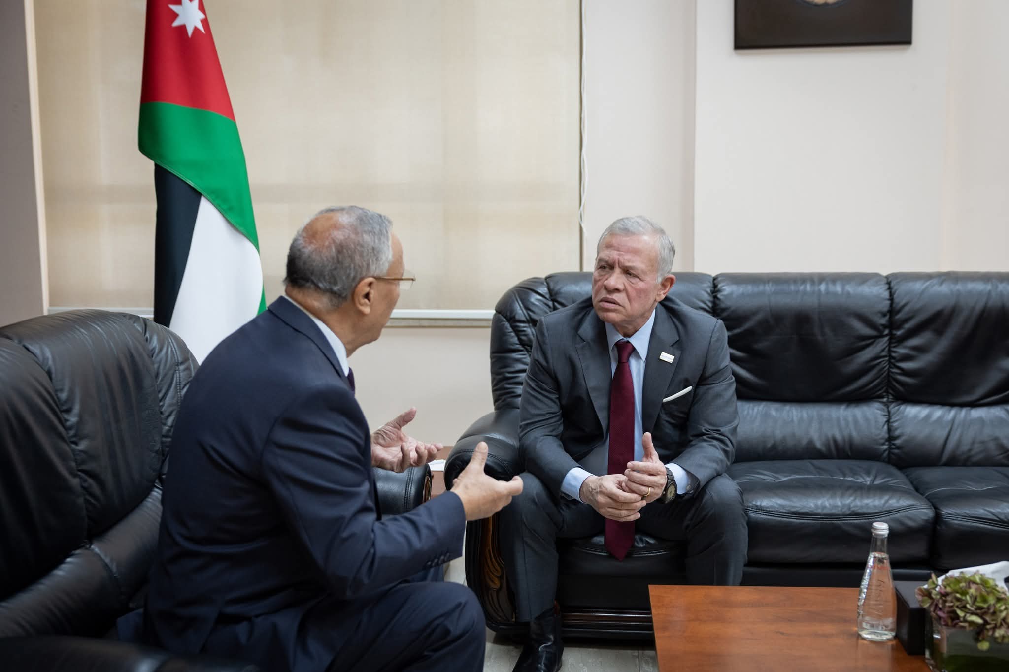 ورافق جلالته، رئيس الديوان الملكي الهاشمي يوسف حسن العيسوي، ومدير مكتب جلالة الملك، المهندس علاء البطاينة.