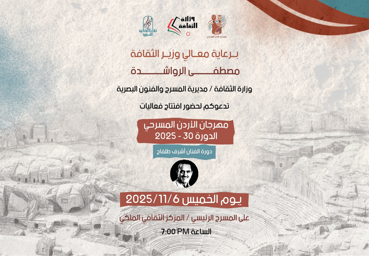 القلعة نيوز- برعاية وزير الثقافة مصطفى الرواشدة تنطلق عروض مهرجان الأردن المسرحي، بدورته الثلاثين، في فضاءات المركز الثقافي الملكي، مساء غدًا الخميس ويستمر حتى مساء يوم الرابع عشر من الشهر الحالي.