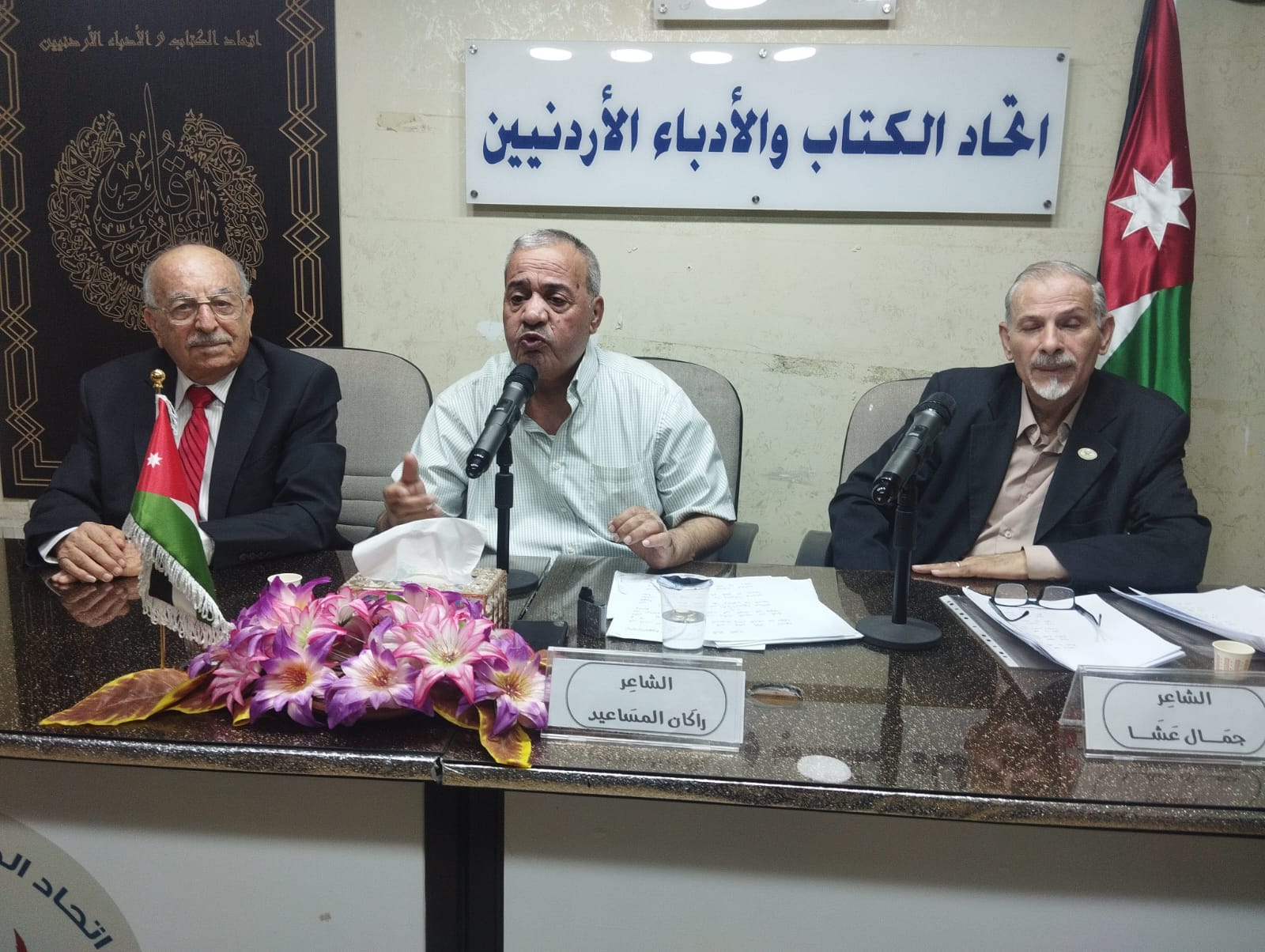 القلعة نيوز- أقام إتحاد الكتاب والأدباء الأردنيين مساء الأربعاء أمسية شعرية للشاعرين جمال عشا وراكان المساعيد ضمن نشاطاتة الثقافية الأسبوعية و قدم الأمسية أ الأديب ضيغم القسوس..