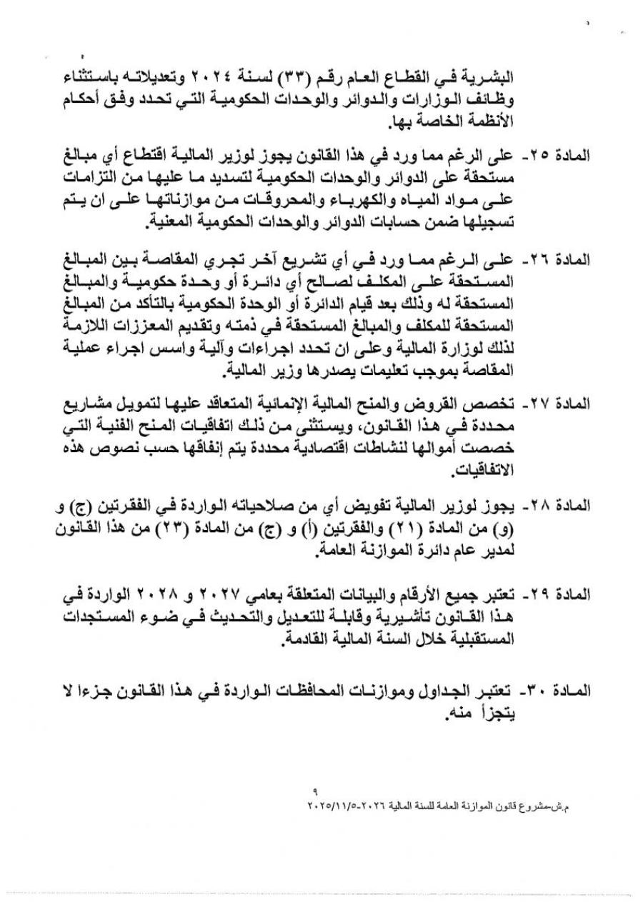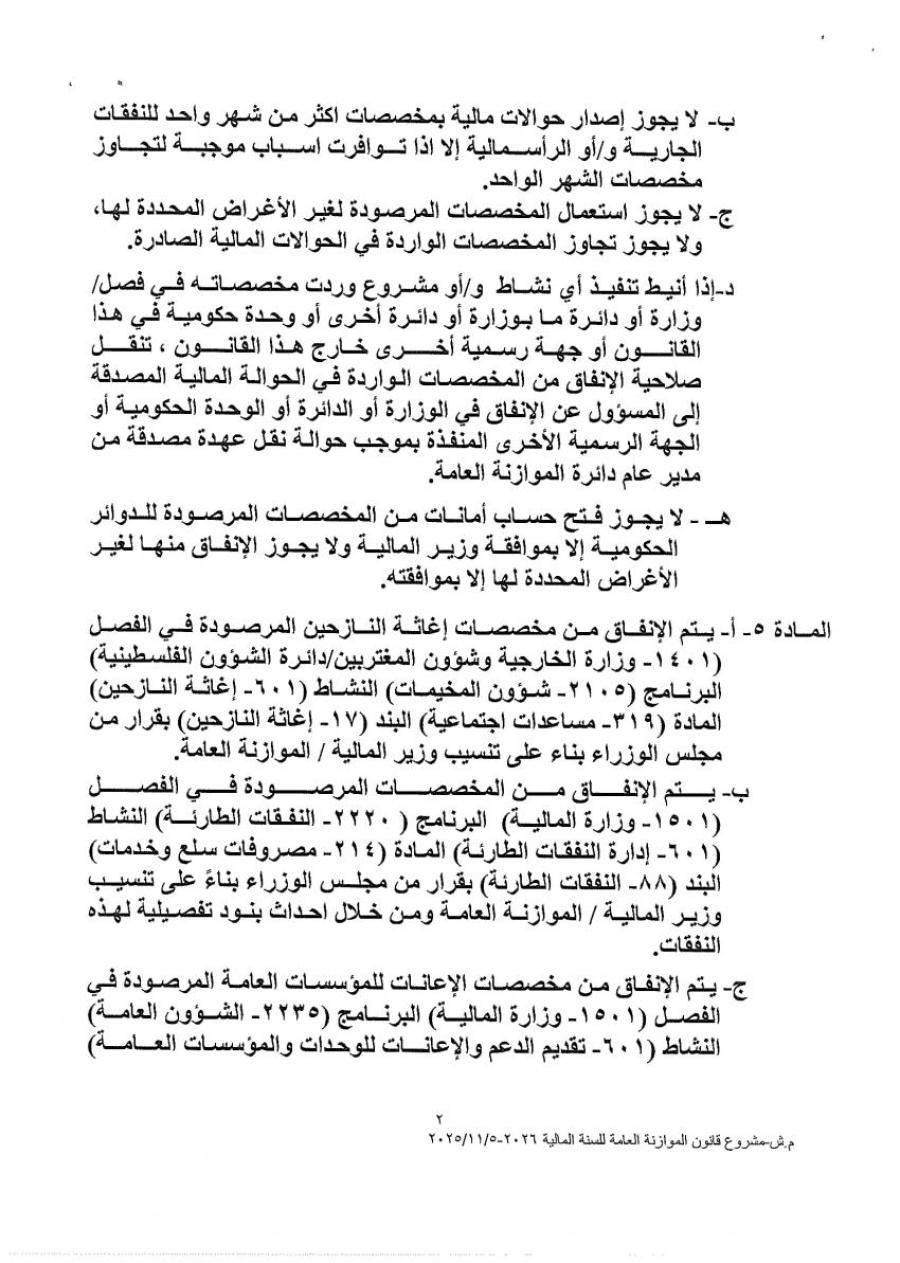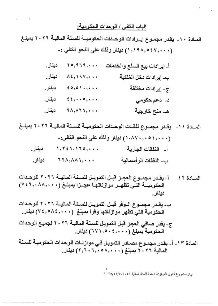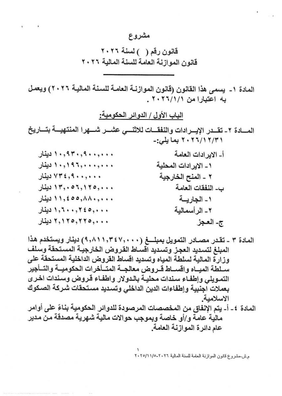القلعة نيوز تنشر مشروع قانون الموازنة لعام 2026 ( تفاصيل )