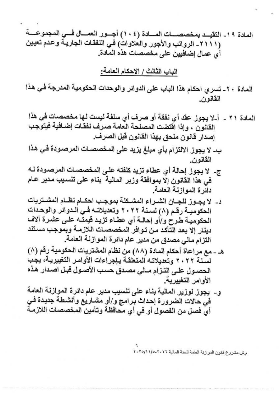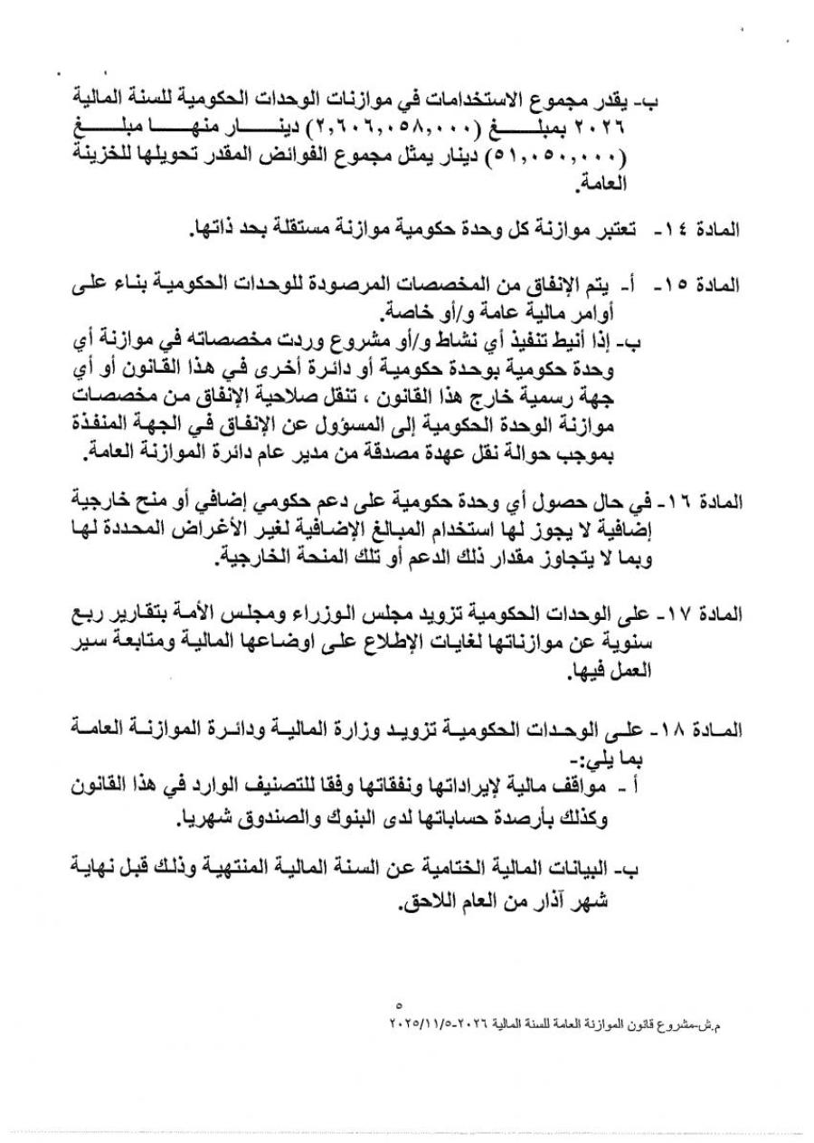 وتاليا مشروع قانون الموازنة كما ورد من الحكومة: