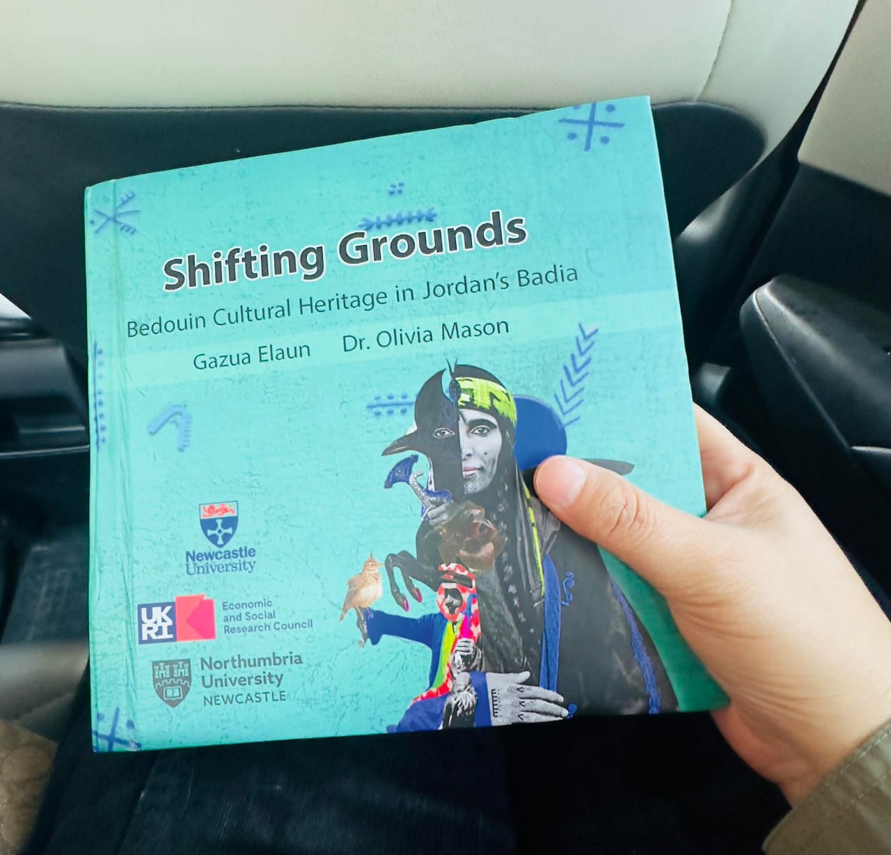 يتقدم الأستاذ سند الحجايا من الزميله المبدعه غزوه متروك العون بالتهنئة والتبريك بمناسبه إصدار كتابها الجديد باللغتين الإنجليزية و العربية بعنوان Shifting Grounds: Bedouin Cultural Heritage in Jordan’s Badia، بإشراف الدكتورة أوليفيا مايسون، بالتعاون مع جامعة نورث أمبريا ، جامعة نيوكاسل / بريطانيا، ووزارة الثقافة .