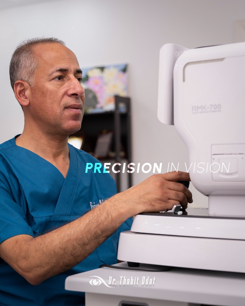 يرافقه بفحص العين الذي يجريه الطبيب ثابت العودات للمرضى ،واجراء الطبي الذي يقرره ، يؤكد رقي هذا الطبيب ، وتعامله مع المرضى ، وحلاوة لسانه ،ومراعاته مشاعر المرضى .