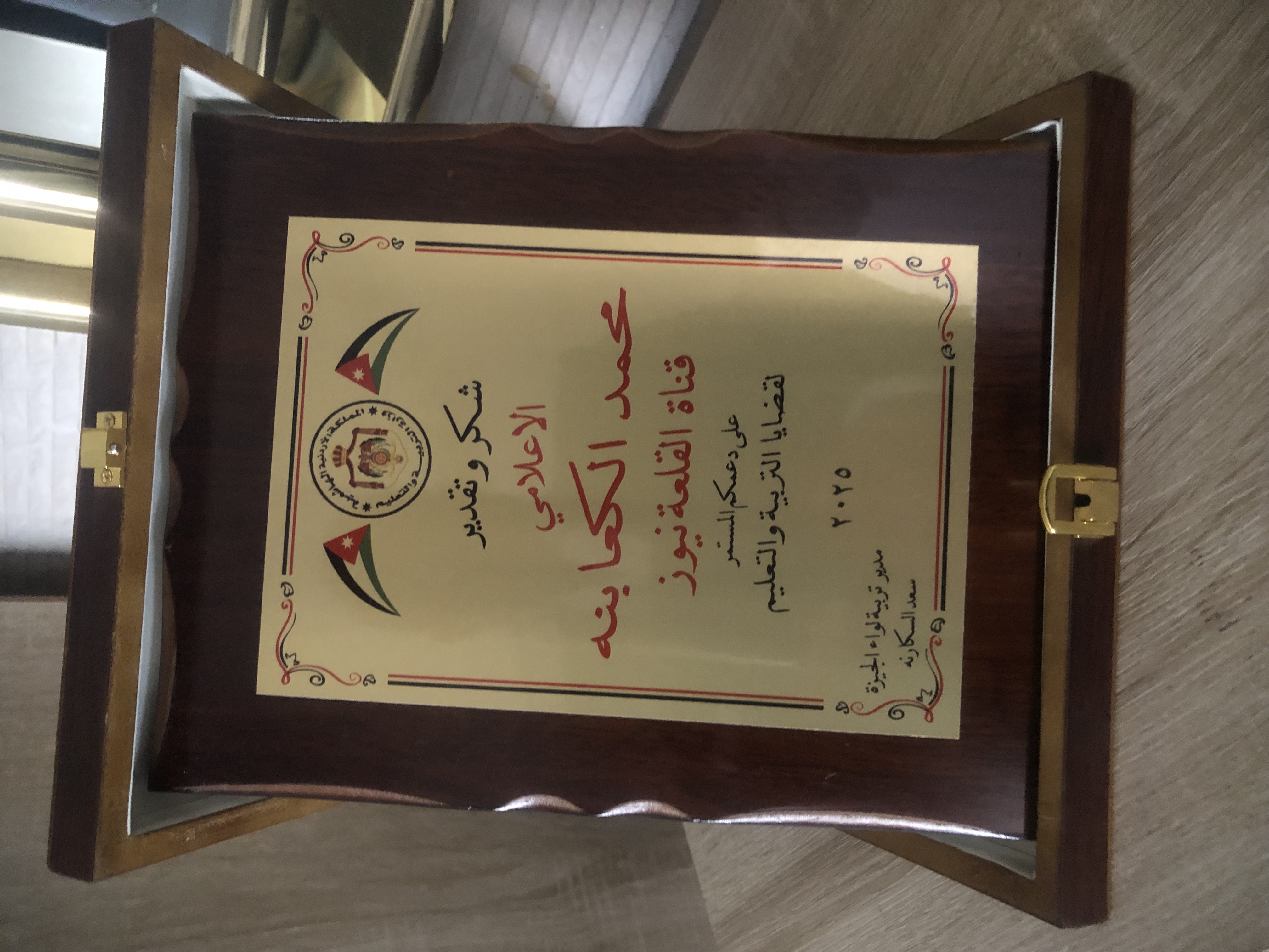 كرم مدير تربية لواء الجيزه السابق الاستاذ سعد السكارنه الزميل الاعلامي محمد الكعابنه وذلك للدور الكبير الذي قدمه الكعابنه في الدعم الاعلامي للمديريه وابراز النشاطات بمختلف انواعها خلال عام ٢٠٢٥ وفي مختلف مناطق اللواء ، وبدوره شكر الكعابنه الاستاذ سعد السكارنه على هذا التكريم والتقدير لدور الاعلام في دعم المسيره التربويه في لواء الجيزه ، وأضاف الزميل الكعابنه ان اصرار مدير التربيه السابق السكارنه على أيصال التكريم له رغم احالته على التقاعد قبل حفل التكريم بيوم واحد شاكرا له هذه اللفته الكريمه والأصيلة متمنيا له مزيدا من التوفيق والنجاح لخدمة الوطن الغالي في ظل راعي المسيرة المباركة جلالة الملك عبدالله الثاني بن الحسين وولي عهده الامين سمو الامير الحسين بن عبدالله الثاني حفظهم الله ورعاهم