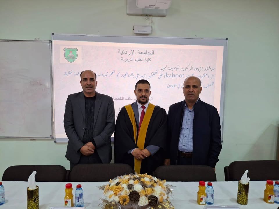 محمد الكعابنه يهنئ الدكتور زيد خلف الكعابنه بحصوله على شهادة الدكتوراه بأمتياز