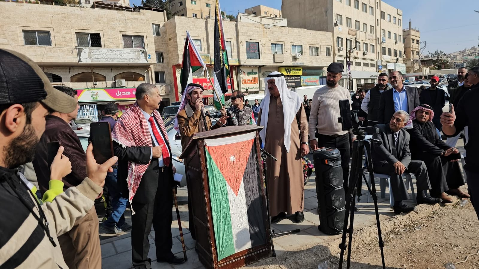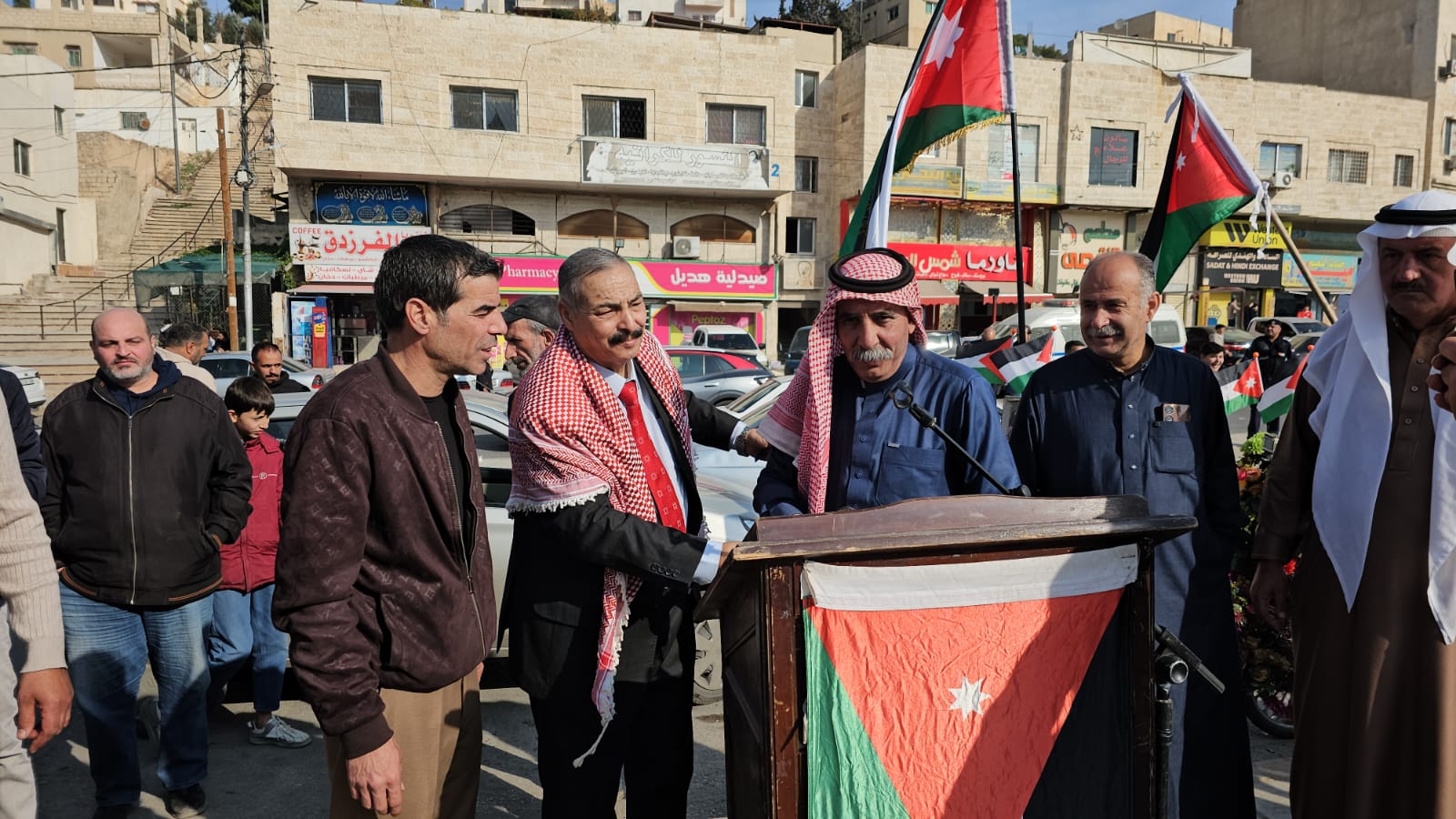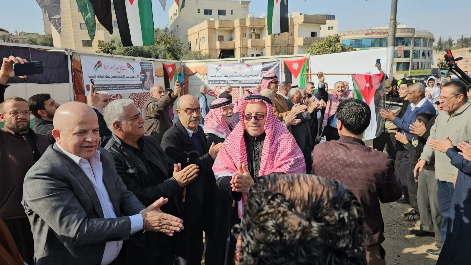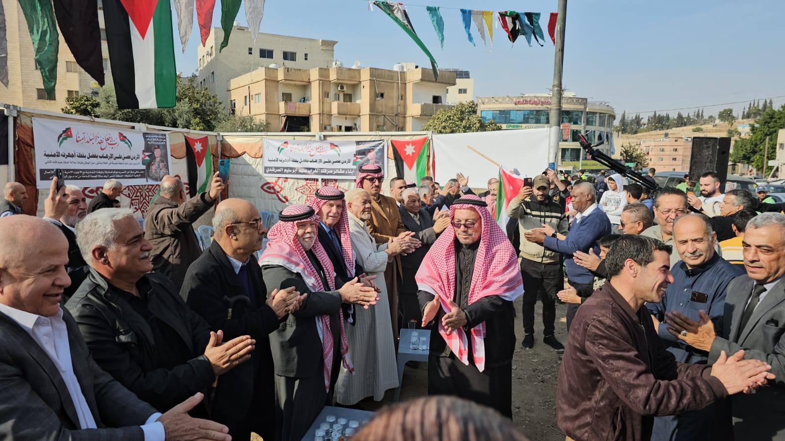 القلعة نيوز- احمد السيد - رعى النائب عبدالرحمن العوايشة وقفة تضامنية نظمها أبناء لواء ماركا منطقة جبل النصر بالتعاون مع مجلس محلي مركز امن النصر وعدد من الجمعيات التي تضم جمعية أبناء معان الخيرية وجمعية تراب الوطن للتنمية الشاملة وجمعية مخيم الحسين لرعاية الأيتام والفقراء وجمعية انجاز للتوعية المجتمعية مع الوطن وجلالة الملك والأجهزة الأمنية في منطقة جبل النصر.