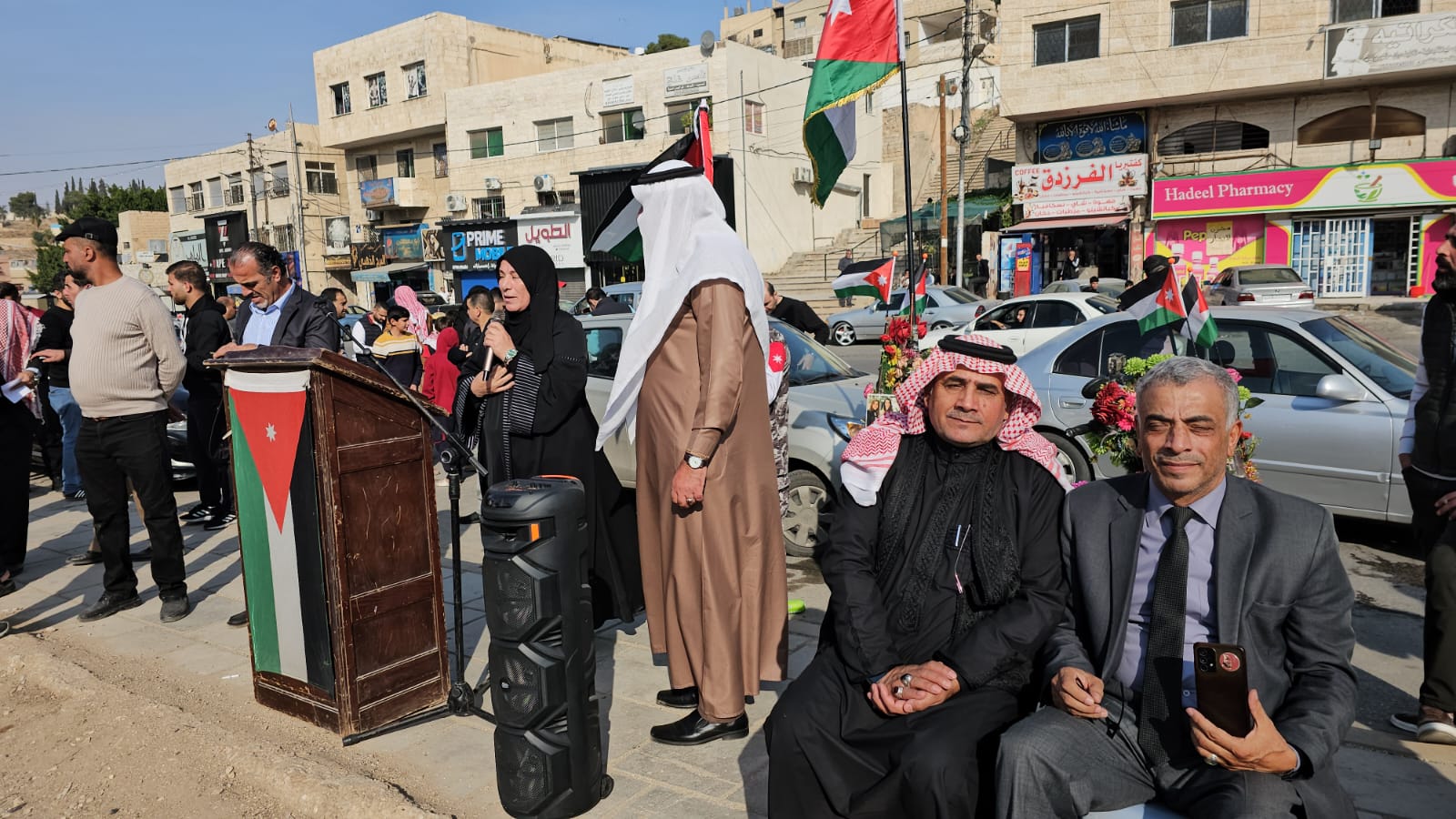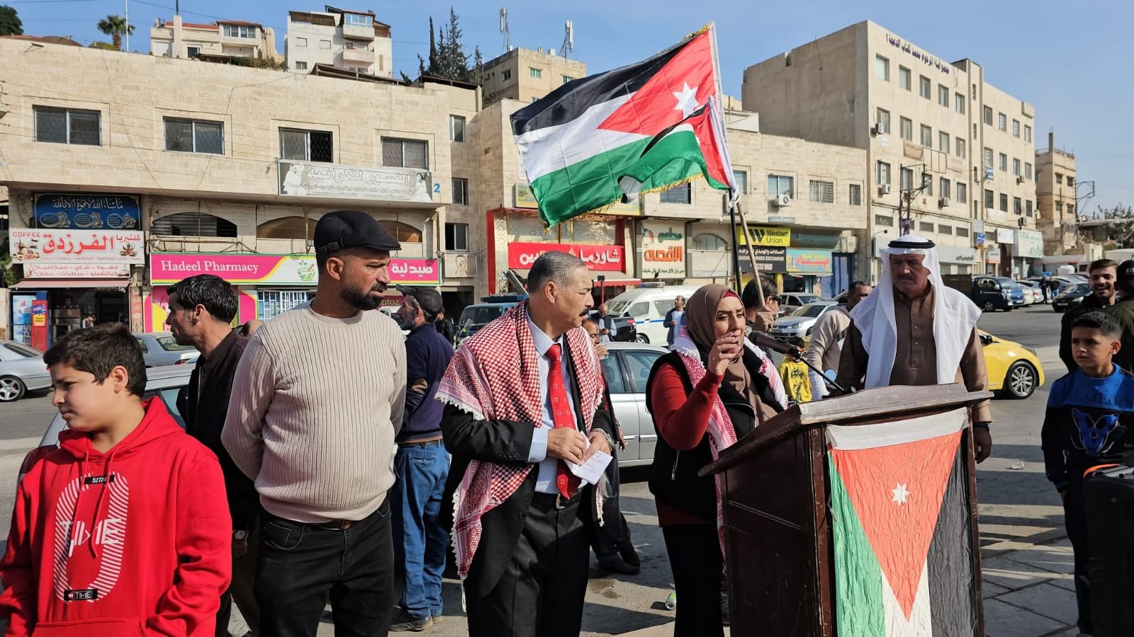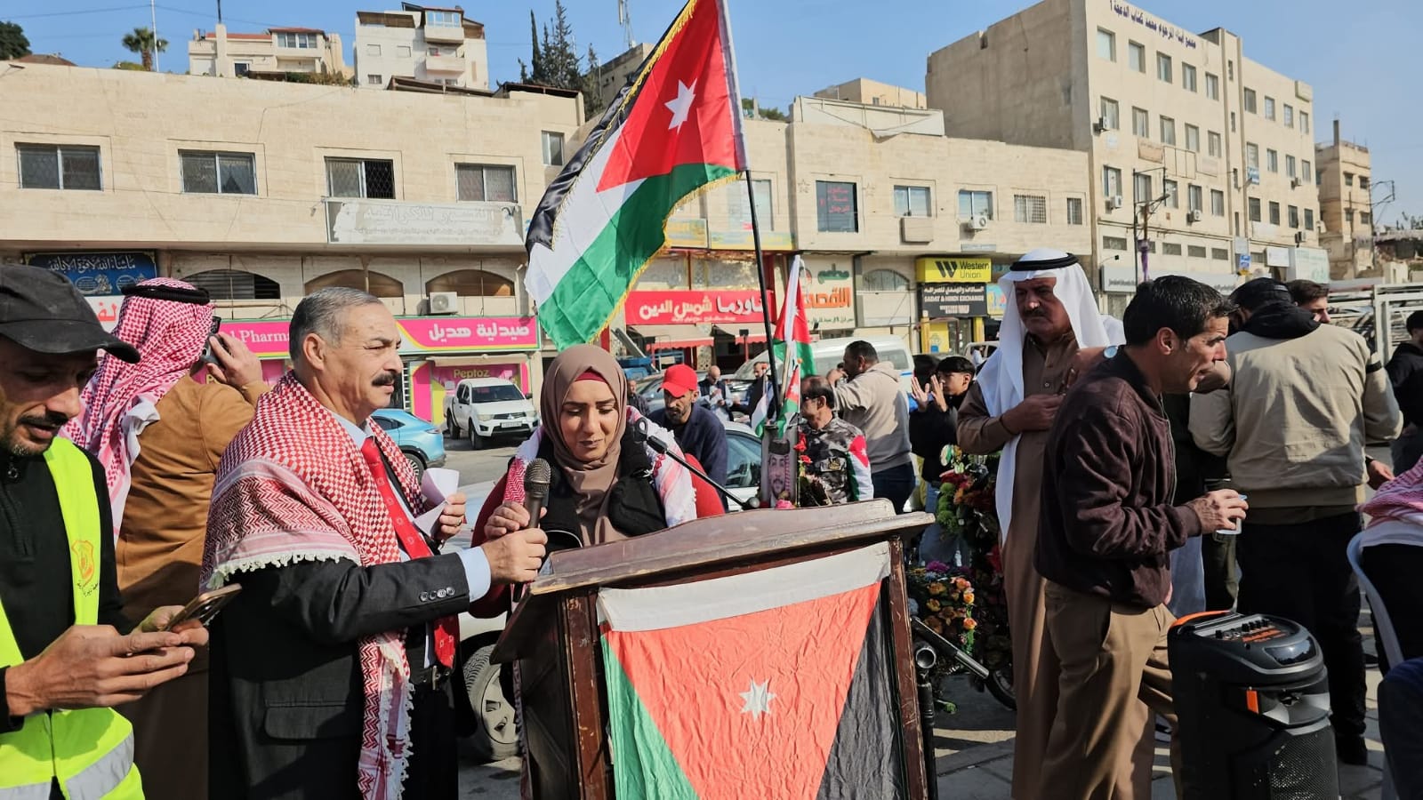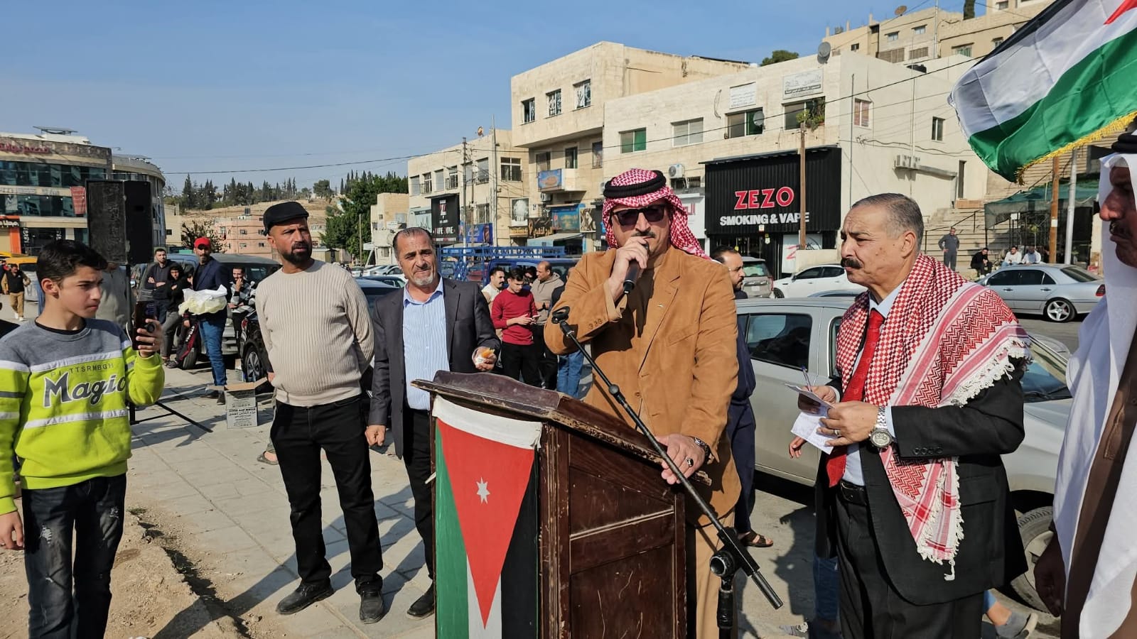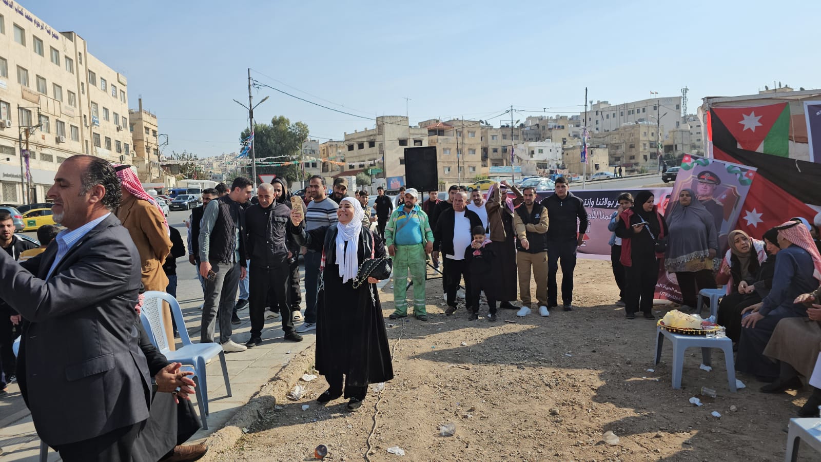 القلعة نيوز- احمد السيد - رعى النائب عبدالرحمن العوايشة وقفة تضامنية نظمها أبناء لواء ماركا منطقة جبل النصر بالتعاون مع مجلس محلي مركز امن النصر وعدد من الجمعيات التي تضم جمعية أبناء معان الخيرية وجمعية تراب الوطن للتنمية الشاملة وجمعية مخيم الحسين لرعاية الأيتام والفقراء وجمعية انجاز للتوعية المجتمعية مع الوطن وجلالة الملك والأجهزة الأمنية في منطقة جبل النصر.