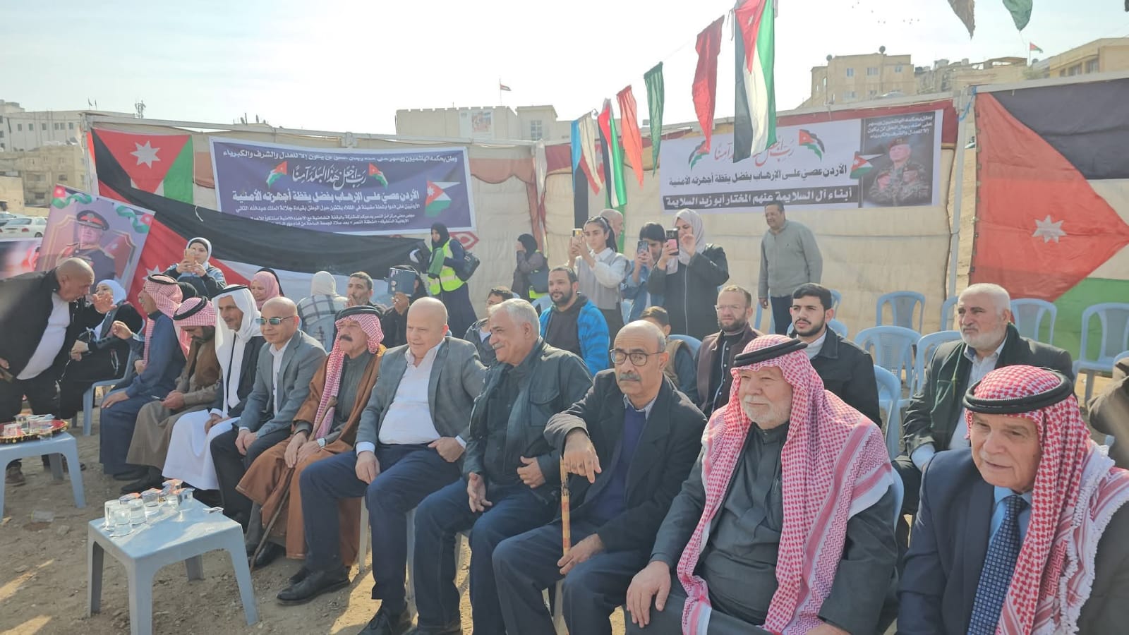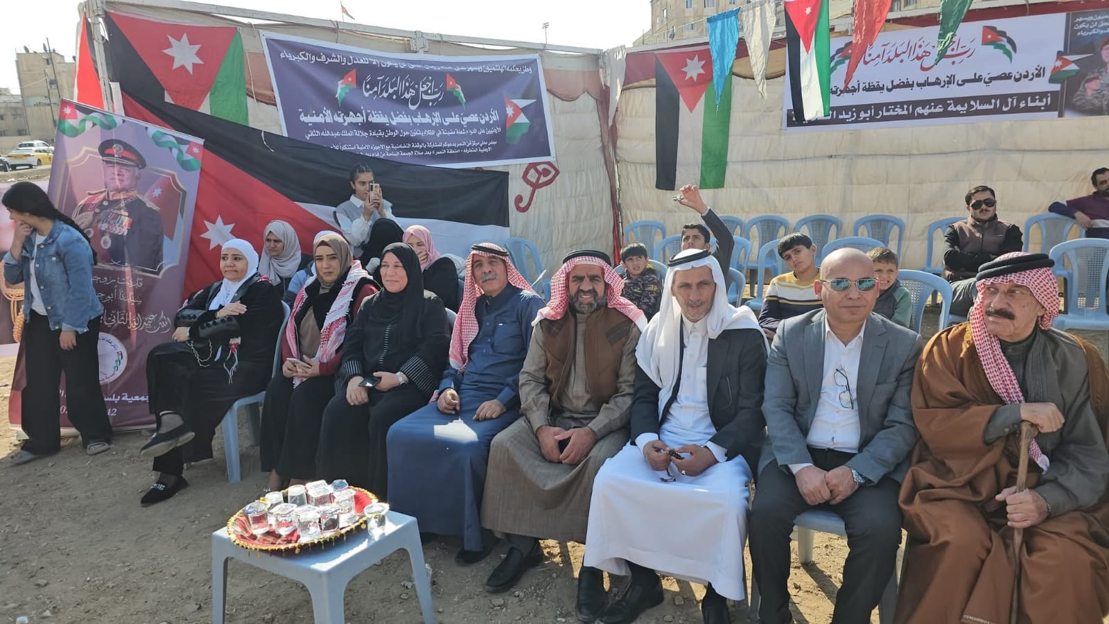 وتحدث المشاركين عن التفافهم حول القيادة الهاشمية جلالة الملك عبدالله الثاني وولي العهد سمو الأمير حسين ،ودعم ومساندة الأجهزة الأمنية والجيش العربي وفرسان الحق لمنع من تسول له نفسه المساس في امن الوطن وتفكيك السلم المجتمعي.