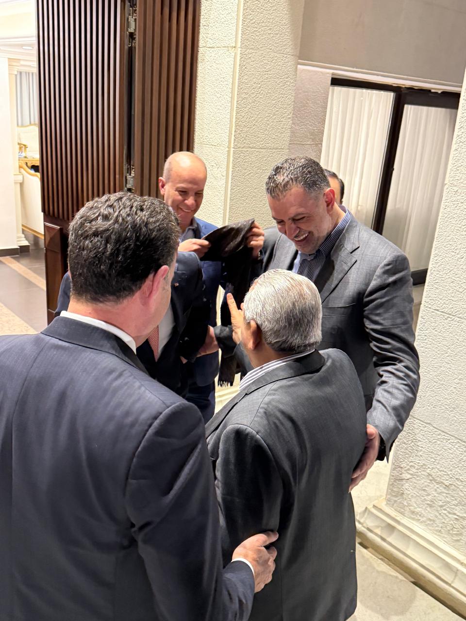 أقام الوزير الأسبق نضال البطاينة مساء أمس في دارته في عمان، مأدبة عشاء لتكريم رئيس مجلس النواب السابق أحمد الصفدي وذلك على جهوده التي قام بها إبّان تولّيه رئاسة المجلس وذلك بحضور رئيس مجلس الأعيان دولة فيصل الفايز ورؤساء الوزراء السابقين كل من دولة عبد الرؤوف الروابدة ونادر الذهبي وأصحاب المعالي وليد المصري وتيسير النعيمي ومصطفى الرواشدة وهيفاء النجار ونضال القطامين ومحمود الشياب وخولة العرموطي وسعد جابر وياسين الحسبان إلى جانب عدد من المسؤولين، ورحب البطاينة بالحضور قائلا أننا يجب أن نكرس مبدأ تكريم من غادر المنصب وليس فقط من إستلمه مضيفا أن النائب الصفدي قد قاد المجلس وبذل كل ما بوسعه وفي فترة حرجة ، هذا وقد تخلل الدعوة حضور مُباراة النشامى مع المنتخب الإماراتي الشقيق في أجواء ودية وأخوية .