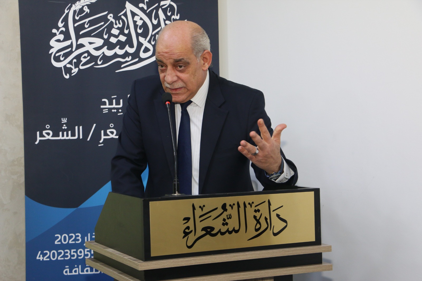 وتحدث الشاعر تيسير الشماسين، رئيس دارة الشعراء الأردنيين، مؤكدًا رسالة الدارة في احتضان المبدعين وتقدير مسيرتهم، ومشيرًا إلى المكانة الرفيعة التي يحظى بها المكرَّم في الوسطين الثقافي والأكاديمي.