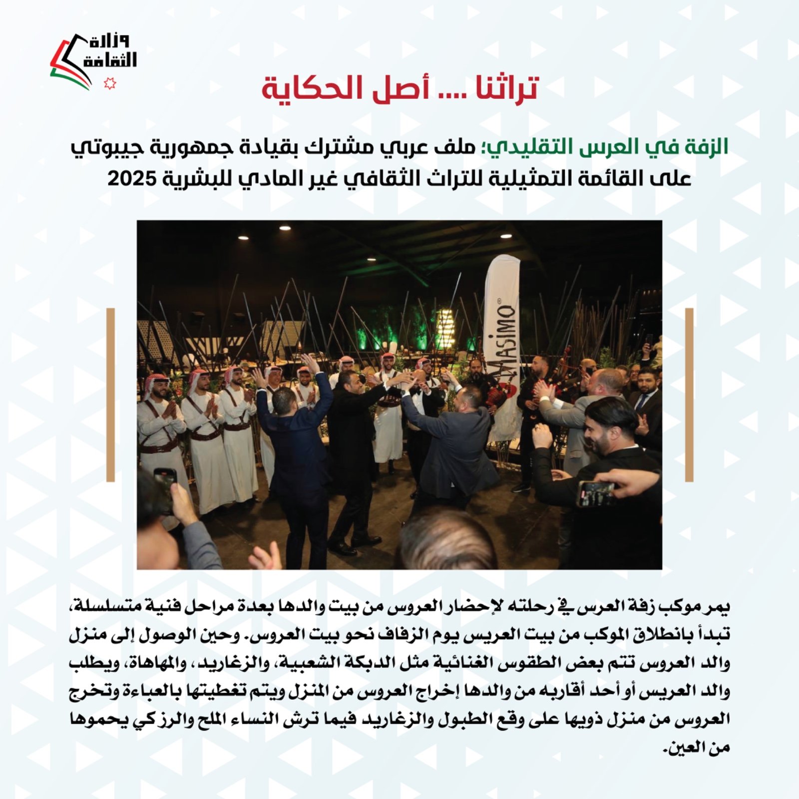 وقالت وزارة الثقافة الأردنية في تدوينه عبر منصة" إكس" أن اللجنة الحكومية الدولية لصون التراث الثقافي غير المادي/ يونسكو المنعقدة حاليا في مدينة نيودلهي / الهند توافق على إدراج عنصري البشت "عباءة الرجال"، والزفة وبمشاركة أردنية فاعلة..