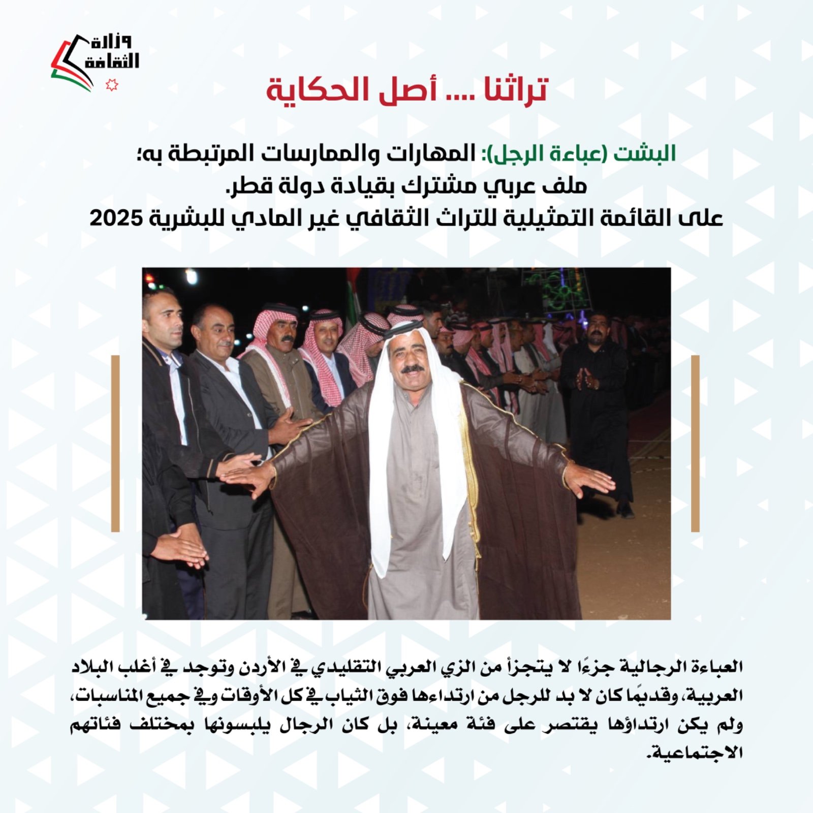 بمشاركة اردنية ... اليونسكو تدرج البشت "عباءة الرجال" والزفة على قائمة التراث الثقافي