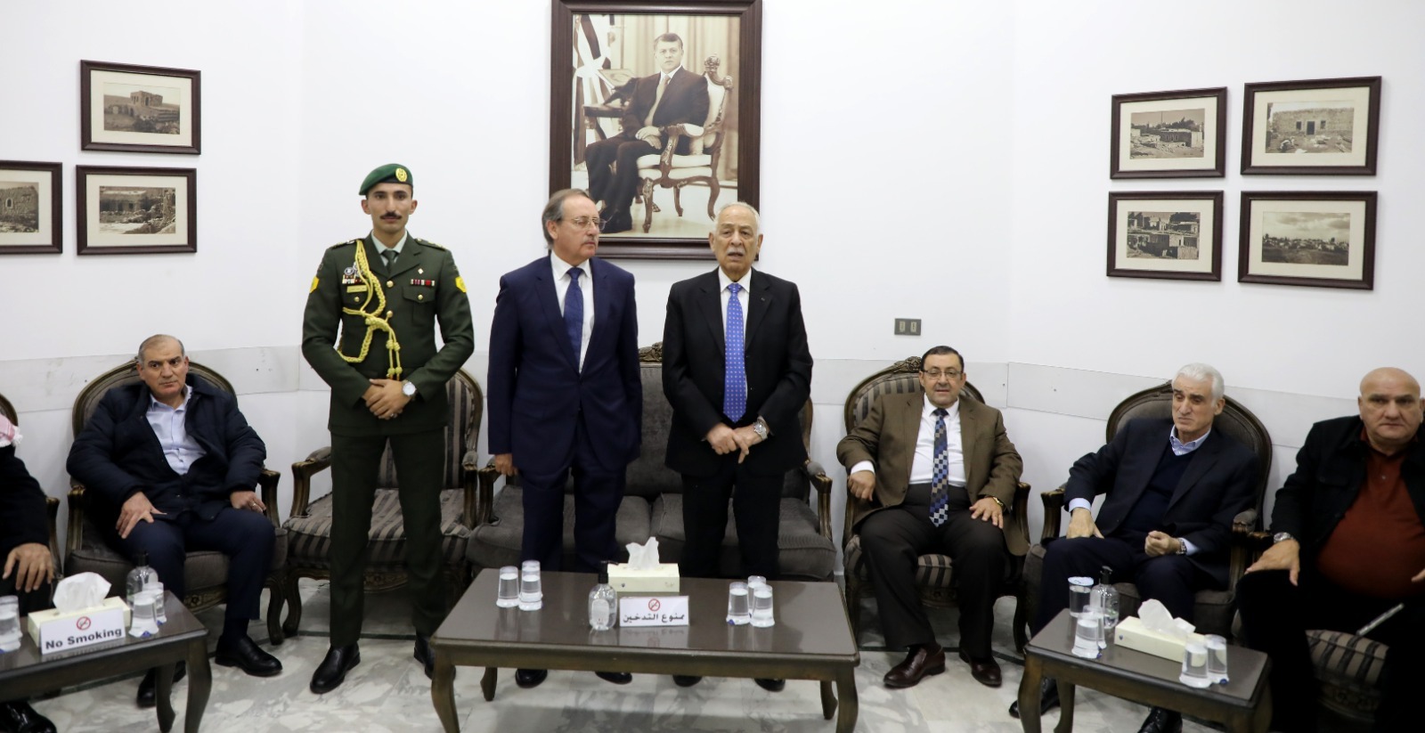 القلعة نيوز- مندوبا عن جلالة الملك عبدالله الثاني وسمو الأمير الحسين بن عبدالله الثاني، ولي العهد، قدم رئيس الديوان الملكي الهاشمي يوسف حسن العيسوي، اليوم الأربعاء، واجب العزاء إلى عشائر العضايلة والعجارمة والخياط.