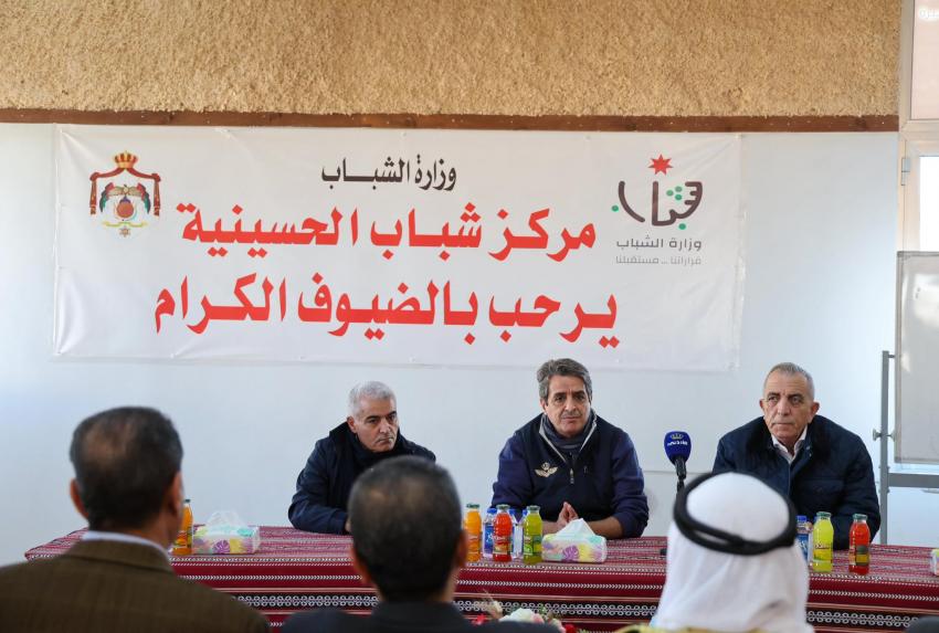 وتابع الوزيران إلى مركز شباب الحسينية، حيث التقيا مجموعة من الشباب والشابات من أبناء المجتمع المحلي والمتطوعين، بحضور محافظ معان خالد الحجاج وعدد من ممثلي الأندية والهيئات الشبابية، وتلبية لطلب أبناء المجتمع المحلي أعلن الدكتور العدوان عن البدء بتنفيذ برامج مركز شابات الحسينية ضمن خطة عمل 2026، في مركز الشباب.