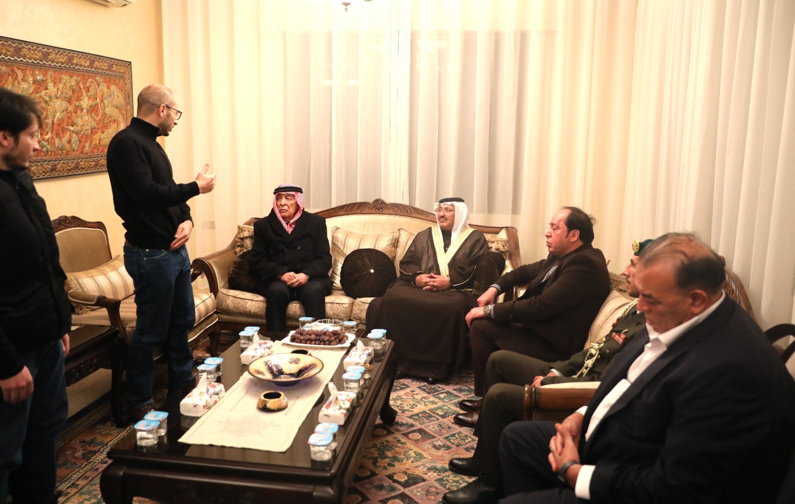*ففي منطقة دابوق، بمحافظة العاصمة*، زار العيسوي بيت عزاء المرحوم العميد المتقاعد الدكتور فايز أحمد الكركي، حيث نقل باسم جلالة الملك وسمو ولي العهد خالص التعازي والمواساة إلى ذوي الفقيد وعموم عشيرة الكركي، داعيا الله أن يشمل الفقيد برحمته الواسعة.