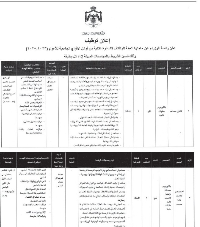 اعلنت رئاسة الوزراء، اليوم الاربعاء عن حاجتها لتعبئة وظائف شاغرة.