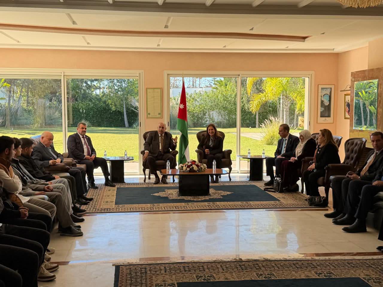 من جانبها، رحبت السفيرة جمانة غنيمات برئيس مجلس النواب وأعضاء الوفد المرافق، مؤكدة أن السفارة تضع شؤون الطلبة الأردنيين على رأس أولوياتها، وتعمل بشكل متواصل على متابعة أوضاعهم الأكاديمية والمعيشية، وتعزيز التواصل معهم بما يضمن تمثيلًا مشرفًا للأردن في مختلف الجامعات المغربية.