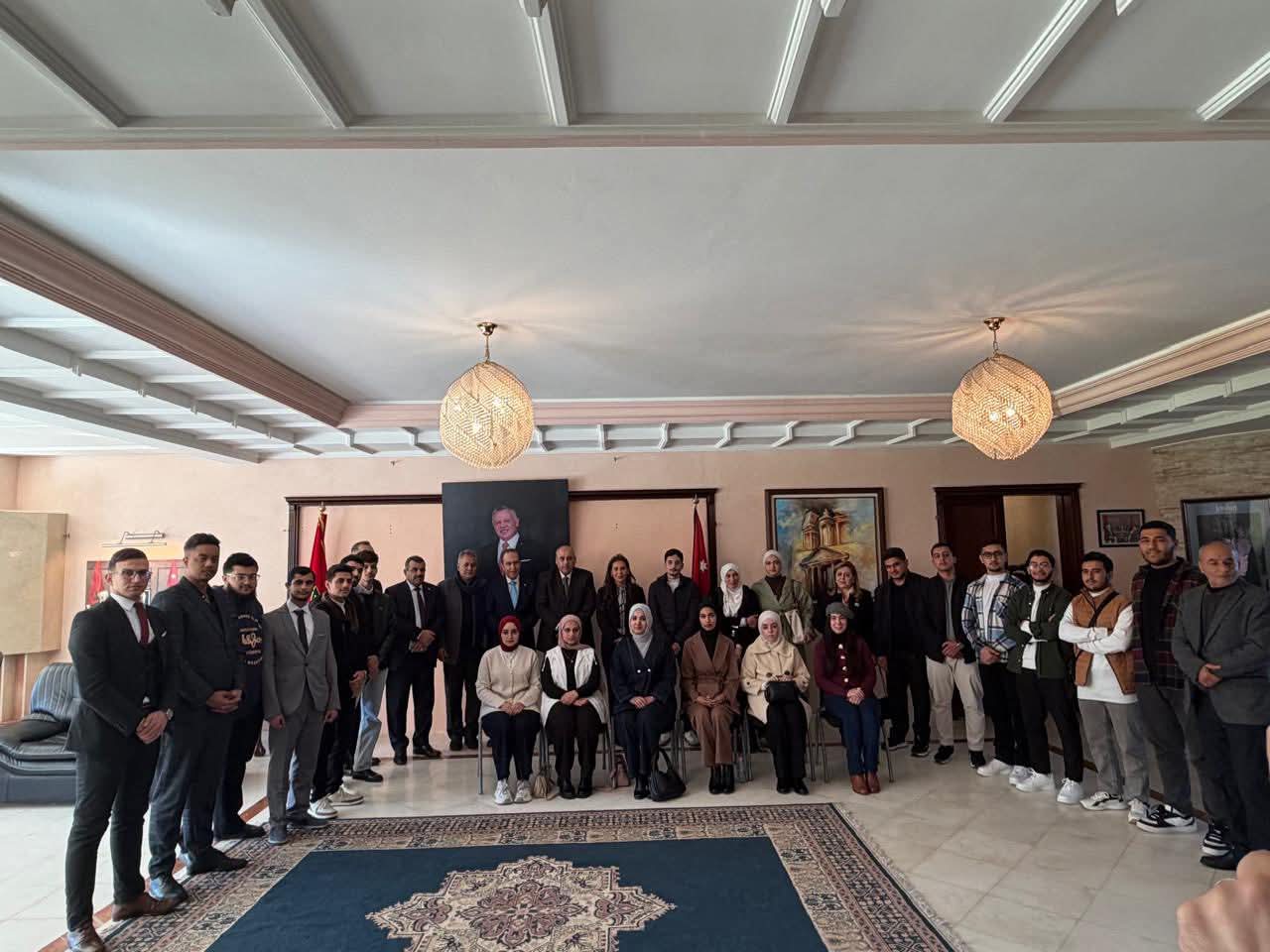 وجاءت الزيارة في إطار التواصل مع أبناء الجالية الأردنية في المغرب، والاطلاع على أوضاع الطلبة الأردنيين المبتعثين للدراسة في الجامعات المغربية، وتعزيز أواصر التعاون والدعم المؤسسي لهم. وخلال الزيارة، التقى رئيس مجلس النواب بطلبة الطب والهندسة الجدد المبتعثين للدراسة اللغة الفرنسية في بحضور السفيرة غنيمات والسكرتير الثاني رامي الخوالدة وأعضاء الوفد النيابي وفريق السفارة.