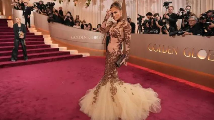 من الإطلالات اللافتة أيضاً في هذا الحفل نذكر إطلالة النجمة جينيفر لوبيز بثوب شفاف زينته تطريزات بنية، اختارته من أرشيف دار Jean Louis Scherrer الفرنسية.