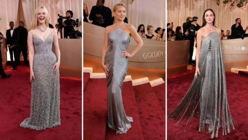 شكل اللون الفضي خيار عدد من نجمات هذا الحفل اللواتي تميزن بإطلالات فاخرة نذكر منها: إطلالة الممثلة إيل فانينغ بثوب من Gucci مطرز بالكامل، نسقته مع عقد ماسي مميز من دار Cartier.