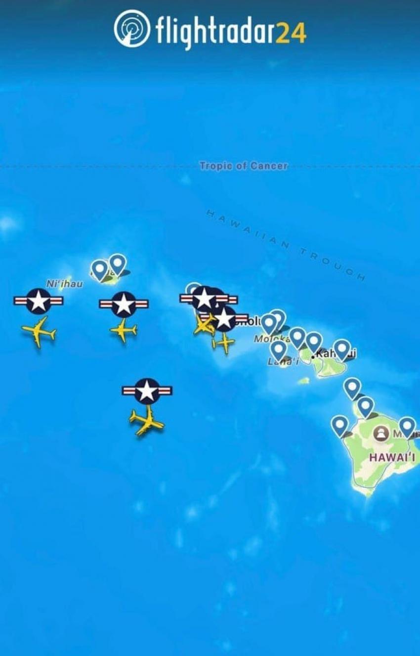 القلعة نيوز- رصد موقع "فلايت رادار" المتخصص في تتبع حركة الطائرات، إقلاع طائرات أمريكية من قاعة هاواي.