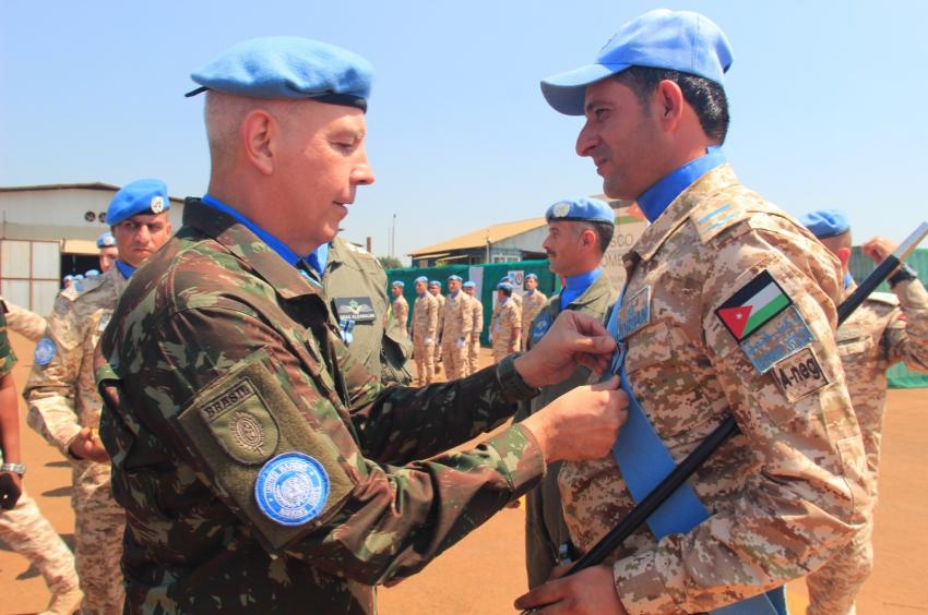 القلعة نيوز - قلّد قائد قوات بعثة منظمة الأمم المتحدة لتحقيق الاستقرار في جمهورية الكونغو الديمقراطية (المونسكو)، الفريق أول غوميز، اليوم الخميس، مرتبات وحدة الطائرات العامودية (الكونغو/1)، ميداليات الأمم المتحدة للخدمة المتميزة، تقديراً لجهودهم المبذولة في دعم الأمن والاستقرار ضمن منطقة عمليات البعثة.