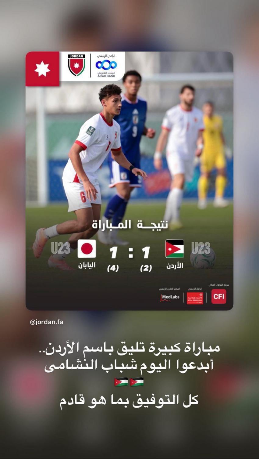 وكتب سموه عبر خاصية الستوري في صفحته بأنستقرام "مباراة كبيرة تليق باسم الأردن.. أبدعوا اليوم شباب النشامى.. كل التوفيق بما هو قادم".