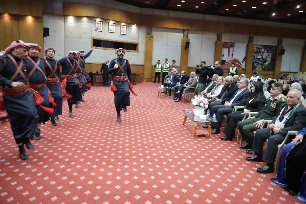 وتخلل الحفل كلمة رئيسة الجمعية وعد حسونة ومشاركة فرقة موسيقات القوات المسلحة وفرقة دبكة الأمانة إضافة إلى عرض أزياء فلكلوري أردني وإلقاء للشعر بهذه المناسبة السعيدة كما قامت الجمعية بتكريم المشاركين بالدروع