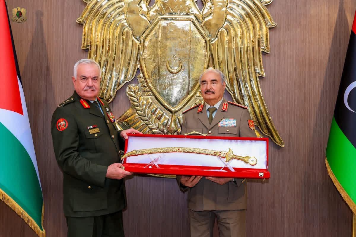 ونقل المشير حفتر تحياته وتقديره إلى جلالة الملك عبدالله الثاني، مؤكدا عمق العلاقات الأخوية والروابط التاريخية الراسخة التي تجمع البلدين الشقيقين ومثمنا الدور الأردني في دعم الأمن والاستقرار في المنطقة.
