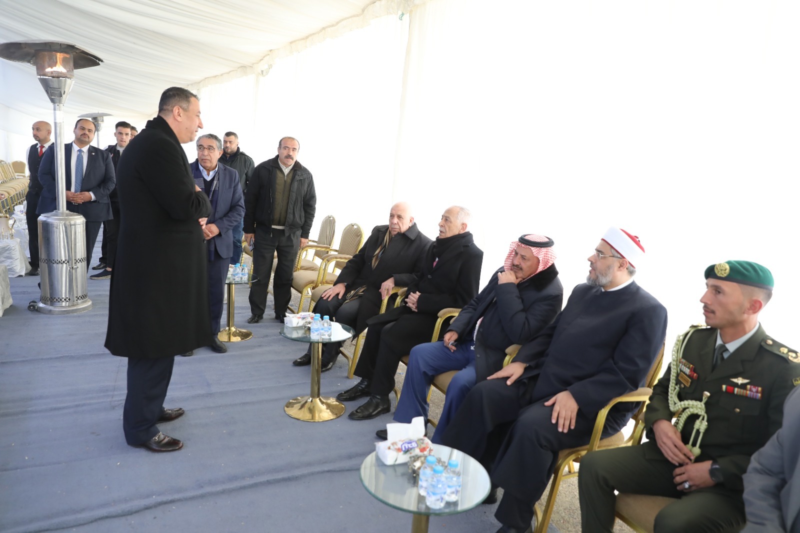 القلعة نيوز- مندوبا عن جلالة الملك عبدالله الثاني وسمو الأمير الحسين بن عبدالله الثاني، ولي العهد، قدّم رئيس الديوان الملكي الهاشمي يوسف حسن العيسوي، اليوم الأربعاء، واجب العزاء إلى عشائر العمري والصرايرة والبستنجي وخريس والدلقموني، ناقلا إليهم تعازي ومواساة جلالة الملك وسمو ولي العهد.