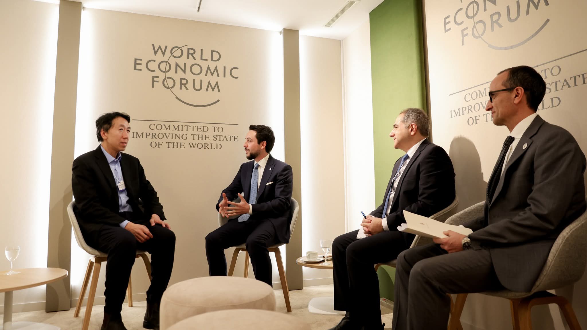 كما عقد سمو ولي العهد لقاءات منفصلة مع رؤساء تنفيذيين ومؤسسي وممثلي شركات عالمية، بحثت سبل فتح آفاق جديدة للتعاون وتبادل الخبرات، بما يعزز النمو الاقتصادي والاستثماري، ويسهم في تطوير المهارات الرقمية للأردنيين.