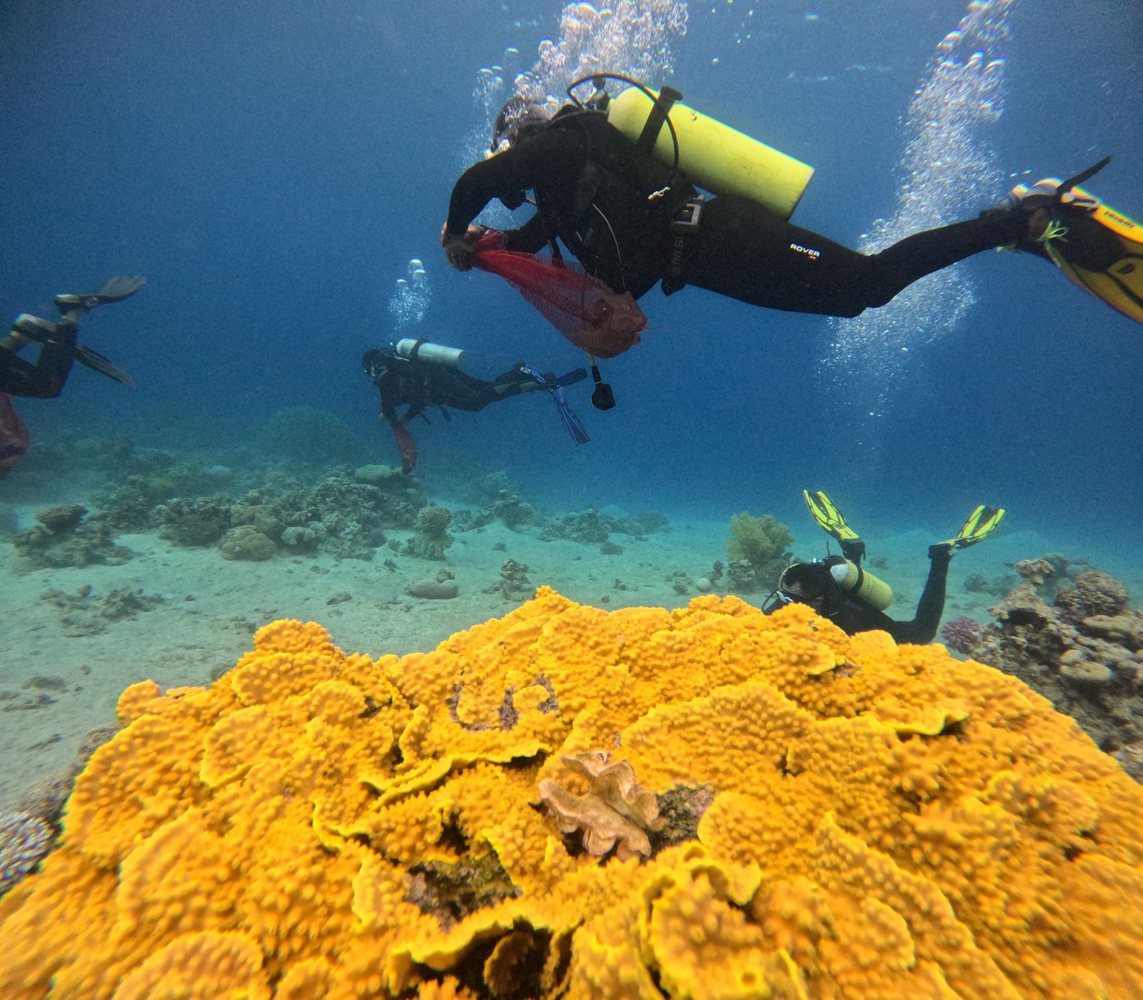 وشملت الحملة جولات ميدانية تحت الماء لتنظيف قاع البحر من المخلفات البحرية الضارة، والنفايات، من خلال غطاسي الدفاع المدني ، إلى جانب مرتبات الإدارة الملكية لحماية البيئة.