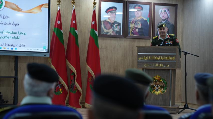 القلعة نيوز- رعى رئيس هيئة الأركان المشتركة، اللواء الركن يوسف أحمد الحنيطي، اليوم الخميس، تخريج دورة المراسل الحربي في معهد تدريب الإعلام العسكري، وكان في استقباله المساعد للإدارة والقوى البشرية ومدير الإعلام العسكري.