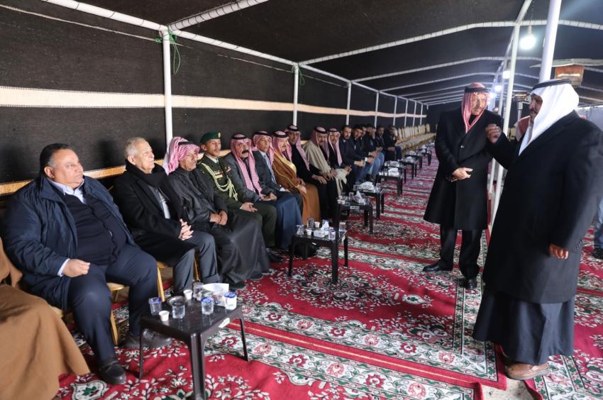 القلعة نيوز - مندوبا عن جلالة الملك عبدالله الثاني وسمو الأمير الحسين بن عبدالله الثاني، ولي العهد، قدّم رئيس الديوان الملكي الهاشمي يوسف حسن العيسوي، اليوم السبت، واجب العزاء إلى عشائر العيسى والحراحشة والعتوم والمرازيق والشمالي، ناقلا إليهم تعازي ومواساة جلالة الملك وسمو ولي العهد.
