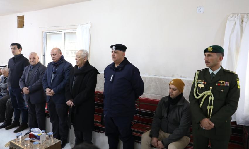وفي أم قنطرة بمحافظة جرش، قدّم العيسوي واجب العزاء بوفاة اللواء محمد أحمد الحراحشة، ناقلا إلى ذوي الفقيد وعموم عشيرة الحراحشة، تعازي جلالة الملك وسمو ولي العهد، سائلا المولى عز وجل أن يتغمده بواسع رحمته ويسكنه فسيح جناته.