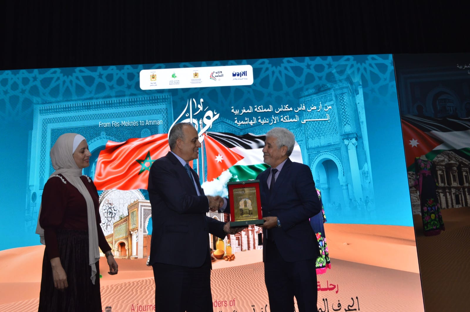 وافتتاح وزير السياحة والآثار الدكتور عماد حجازين ورئيس جهة فاس مكناس من المملكة المغربية عبد الواحد الانصاري بحضور أمين عام وزارة الثقافة الدكتور نضال الأحمد، والسفير المغربي لدى الأردن فؤاد أخريف، ونائب رئيس مجلس الجهة رئيسة اللجنة المنظمة للمعرض خديجة حجوبي، وعدداً من النواب والأعيان والسفراء، المعرض الأردني المغربي للصناعات والحرف التقليدية.